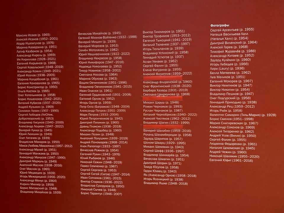 Кто бы сомневался, что выставка представлена в том виде, в каком ее подготовили кураторы! Интересно другое: изъятие картин, фотографий и фамилий художников — это инициатива только музейных кураторов или каких-то других? И почему выбраны именно эти художники? Действия «Манежа» в отношении Дмитрия Шагина еще как-то можно объяснить событиями января 2023 года — тогда во Всероссийском музее декоративного искусства его работу «Митьки никого не хотят победить» сняли с выставки, баннеры и открытки с этой картинкой тоже изъяли. Может, «Манежу» кто-то напомнил об этой истории. Но почему сняты фотографии и вычеркнуты еще несколько имен? Уточнить ответ на этот вопрос не удалось, pr-служба перестала выходить на связь.