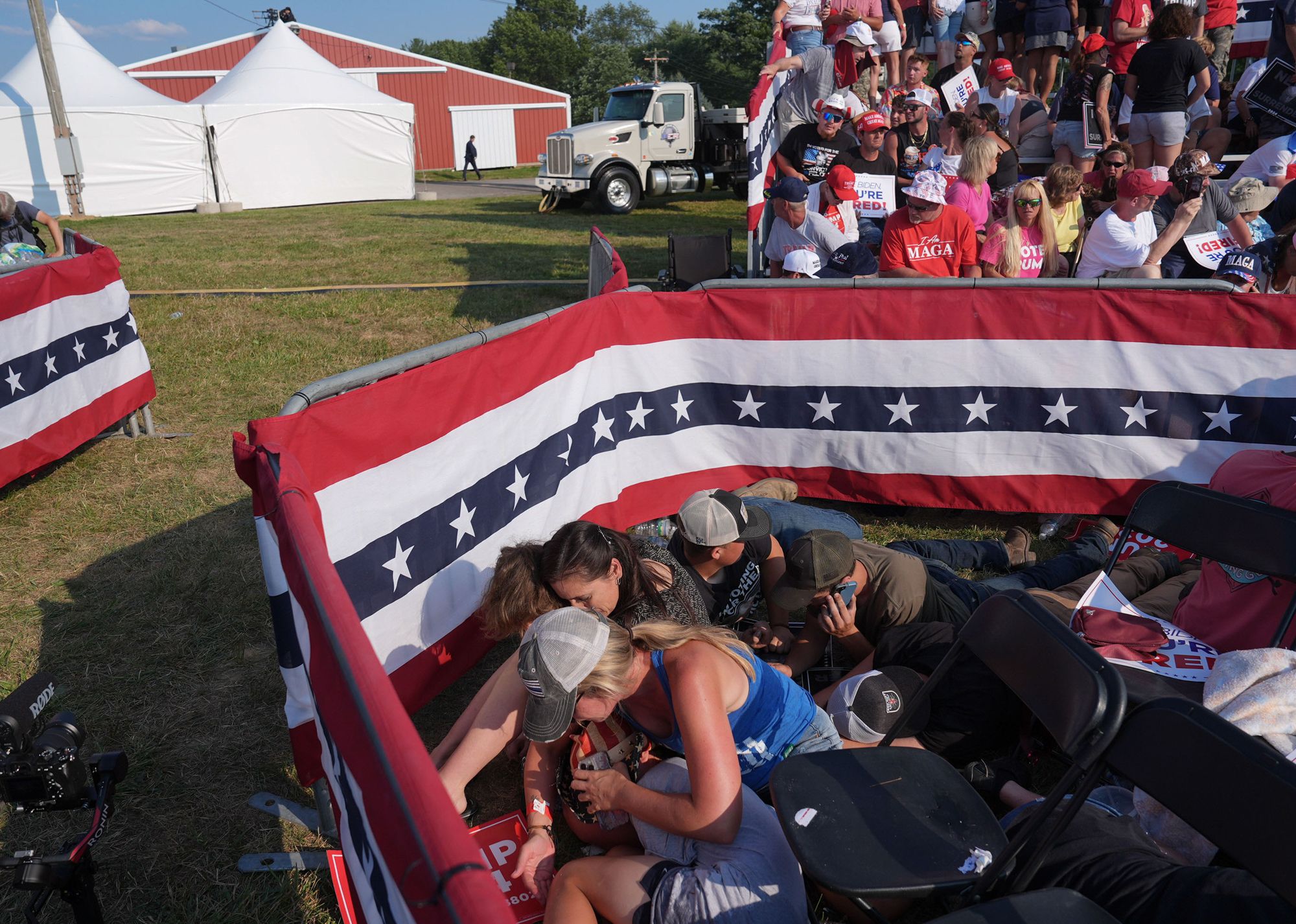 Фотограф The New York Times Даг Миллс сфотографировал, как пуля пролетает за головой ТрампаBrendan McDermid / Reuters / Scanpix / LETA В сторону Дональда Трампа, судя по видео нападения, выстрелили около десяти раз. Вторым выстрелом стрелок ранил Трампа. 13 июля 2024 годаBrendan McDermid / Reuters / Scanpix / LETA Получив ранение, Трамп хватается за ухо, после чего прячется за трибунуGene J. Puskar / AP / Scanpix / LETA Участники митинга пытаются укрыться от пульAnna Moneymaker / Getty Images Сотрудники Секретной службы США выбегают на сцену, чтобы прикрыть собой Дональда Трампа, когда продолжают звучать выстрелыEvan Vucci / AP / Scanpix / LETA Вместе с сотрудниками Секретной службы на сцене появляются вооруженные бойцы спецназа Anna Moneymaker / Getty Images Дональд Трамп в окружении охранников поднимается на ноги после покушенияAnna Moneymaker / Getty Images Трамп вместе с охранниками поднимается на ноги. Его правое ухо окровавлено, на бывшем президенте нет его красной кепки с предвыборным лозунгом Make America Great Again («Вернем Америке былое величие»)Jabin Botsford / The Washington Post / Getty Images Участники митинга во время покушения на ТрампаBrendan McDermid / Reuters / Scanpix / LETA Сотрудники Секретной службы, судя по расшифровке The New York Times, говорят Трампу, что им нужно уходитьBrendan McDermid / Reuters / Scanpix / LETA Когда Трампа поднимают на ноги, он несколько раз повторяет: «Дайте мне обуться!»Brendan McDermid / Reuters / Scanpix / LETA Уходя со сцены, Дональд Трамп в окружении охранников несколько раз вскидывает в воздух правый кулак. В ответ толпа скандирует: «США!»Anna Moneymaker / Getty ImagesDavid Maxwell / EPA / Scanpix / LETA «Трудно представить себе момент, который бы в большей степени олицетворял чувственную связь Трампа с его сторонниками и его мастерство в современной медиа-эпохе, — пишет газета The New York Times. — Трамп не ушел со сцены, не подав сигнал своим поклонникам, что с ним все в порядке, — даже когда некоторые все еще выли от страха»David Maxwell / EPA / Scanpix / LETA Агенты Секретной службы уводят Трампа со сценыAnna Moneymaker / Getty Images Когда Трамп спускается по лестнице со сцены, на его лице видны следы кровиJabin Botsford / The Washington Post / Getty Images Трампа подводят к автомобилю Chevrolet Suburban. Он начинает забираться внутрь, но не успевает дверь закрыться, как Трамп поворачивается к толпе и снова взмахивает кулаком вверхJabin Botsford / The Washington Post / Getty Images Ботинок Трампа, оставшийся на сцене после покушенияAnna Moneymaker / Getty Images / AFP / Scanpix / LETA Сотрудник секретной службы возле участников митингаRebecca Droke / AFP / Scanpix / LETA Сторонники Трампа после покушенияBrendan McDermid / Reuters / Scanpix / LETA Сторонницы Трампа вскоре после покушения на бывшего президентаAnna Moneymaker / Getty Images / AFP / Scanpix / LETADavid Dee Delgado / Reuters / Scanpix / LETA Бегущая строка на здании штаб-квартиры телеканала Fox в Нью-Йорке сообщает после покушения на Трампа, что бывший президент «в порядке»Michael M. Santiago / Getty Images Жители Милуоки, штат Висконсин, смотрят выпуск новостей после покушения на ТрампаDavid Dee Delgado / Reuters / Scanpix / LETA Люди делают селфи у Trump Tower в Нью-Йорке после того, как на Трампа совершили покушениеAl Drago / Bloomberg / Getty Images Посетители кафе в Милуоки смотрят новости о покушении на ТрампаAngela Weiss / AFP / Scanpix / LETA Выпуск новостей в одном из баров Милуоки, штат Висконсин@AlecLuhn Футболка с изображением Трампа после покушения, появившаяся в продаже 14 июляKirsty Wigglesworth / AP / Scanpix / LETA Фотография Трампа с поднятым вверх кулаком на обложке британской газеты The Mail on Sunday. Лондон, 14 июля 2024 годаSaul Martinez / Getty Images / AFP / Scanpix / LETA Сторонники Дональда Трампа молятся возле его резиденции Мар-а-Ла