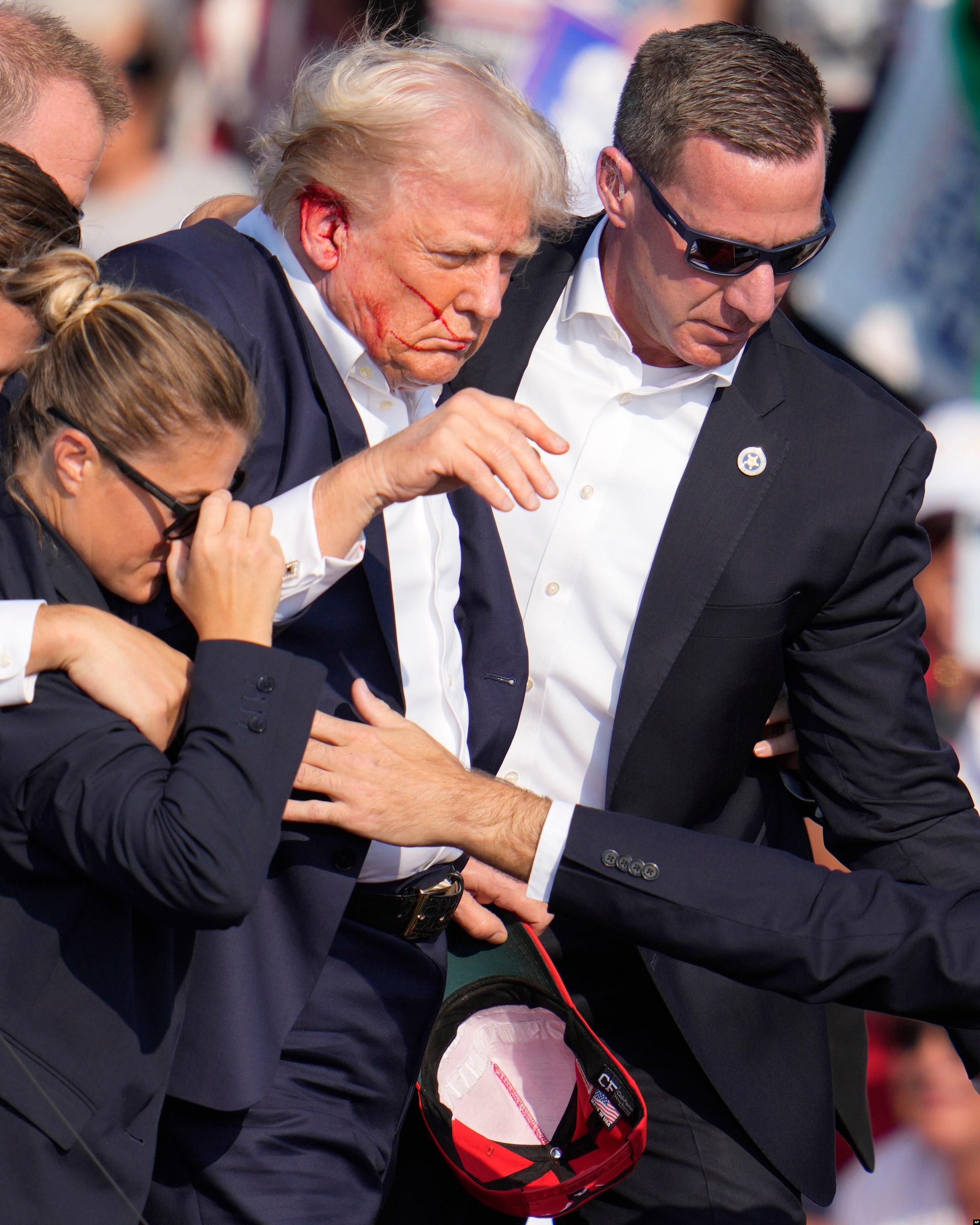 После того, как Трамп поднялся из-за кафедры, на его ухе и виске была видна кровь. Позже он сообщил, что ухо было пробито пулей, а он потерял много крови. О типе оружия, из которого он был ранен, не сообщается.