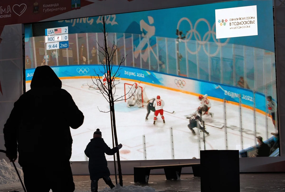 Зрители смотрят трансляцию зимних олимпийских игр в Пекине, Одинцово, Подмосковье, 5 февраля 2022 года. Фото: Виталий Смольников / Коммерсантъ / Sipa USA / Vida Press