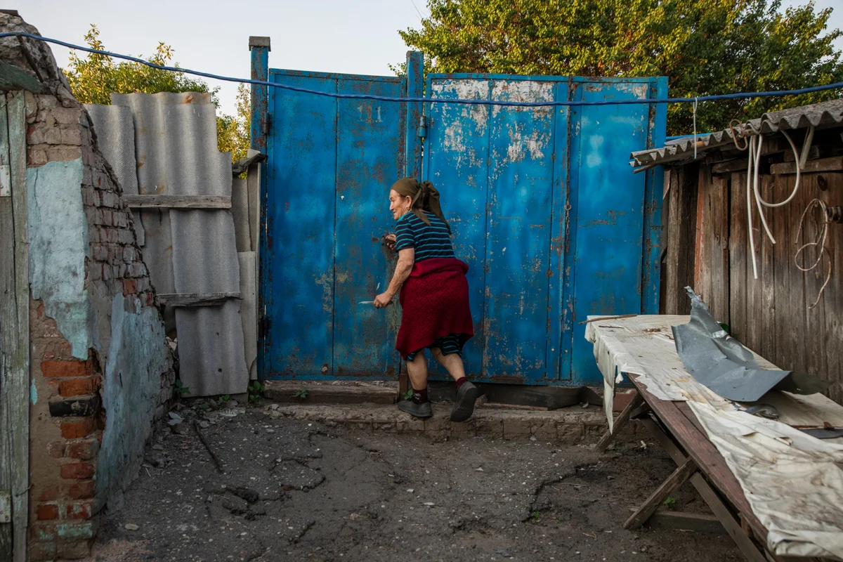 Когда дроны летели и били, прятались. А потом выскакивали, тушили. Огнетушителями, водой. Прибежим, потушим и тикаем. Сгорел дом не сильно, а вот разбили его совсем… Мы сейчас перебрались в летнюю кухню, там живем. Пока не холодно. Диванчик есть, спим на нем. Света нет. Но есть водичка и газ. И то слава богу…