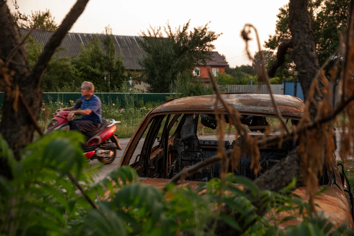 Сине-желтое полотно месяц назад с помощью дрона водрузили на вышку связи в Безымено украинские военные. — А наши горячие парни сначала стреляли по флагу из автоматов, потом пытались флаг сжечь. Но в итоге сожгли вышку, и теперь всё село без связи, — разводит руками женщина. Эти люди очень устали от войны. Ежедневные прилеты и обстрелы со стороны Украины, горящие и разрушенные дома, раненые и убитые мирные жители — таковы будни приграничных сел Белгородской области на протяжении трех последних месяцев (с тех пор как российские войска решили продвигаться на харьковском направлении, здесь — в 60 км от Харькова — жить стало еще опаснее). Люди просили защиты с мая — у руководства района, области, Минобороны. Не допросились. «Сколько нужно человеческой крови, чтобы нас услышала Москва? Дети гибнут, а Москве плевать? Где защита всей территории области? Где безопасность людей? Почему убивают мирных граждан? Путин нам наврал, когда вступал в должность президента РФ?» — задает вопросы местная жительница Лариса. Ее соседи по селу вздыхают. Все хотели бы знать ответы. Доведенные до крайней степени отчаяния, потерявшие надежду быть услышанными и получить помощь жители Грайворонского района Белгородской области 12 июля напрямую обратились к президенту России Владимиру Путину. Из президентской администрации им пообещали рассмотреть обращение в сентябре. Вместо ответа, защиты и помощи авторы петиции, а с ними и все остальные, дождались другой реакции со стороны местных властей. В 14 населенных пунктов Белгородской области на границе России и Украины из-за «крайне сложной оперативной ситуации» с 23 июля по решению оперативного штаба региона ограничили въезд. Режим ЧС не объявляли. Никого не переселяли. Не обеспечивали новое жилье. Не заботились о людях. Просто отрезали от мира жителей 14 сел и поселков, которые и так не могли ни до кого докричаться и рассказать о своих бедах. Теперь их шансы быть услышанными еще меньше. За несколько дней до ограничения въезда корреспондент «Новой газеты — Балтия» побывал в одном из приграничных сел — Безымено.