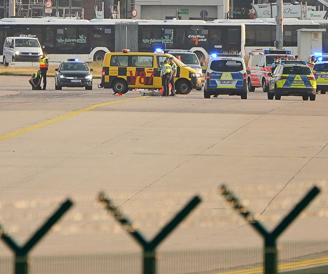 Ранним утром восемь активистов "Последнего поколения" попали на лётное поле, проделав дыру в проволочном заборе. Семеро приклеили себя к асфальту, а один застрял у ограждения. Акция прошла в рамках глобального протеста "Нефть убивает", участники которого требуют от властей заключить общемировое соглашение об отказе от нефти, газа и угля к 2030 году.