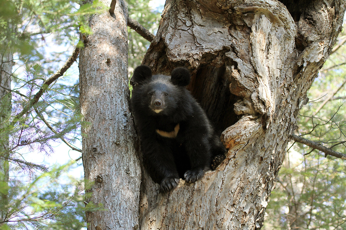 — Именно эти корма определяют его благополучие и возможность существования в нашем регионе, — рассказывает Колчин. — Для этого вида исключительно важны старовозрастные коренные леса. Он не умеет, как бурый медведь, рыть берлоги и потому ищет естественные убежища: в России это в основном дупла деревьев. На деревьях он не только спит и кормится, но и спасается от более сильных хищников — тигра и бурого медведя, которые при любом удобном случае на него успешно охотятся.