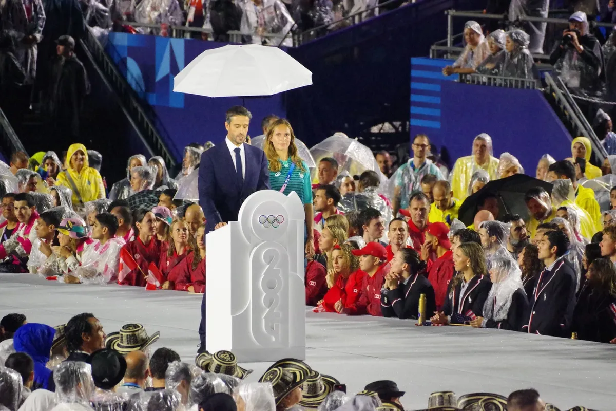 Олимпиады Париж не видел ровно сто лет, с 1924-го. И как жаль, что не повезло с погодой: дождь зарядил вскоре после начала церемонии — около восьми вечера, без перерыва — и все-таки портил праздник до самого конца, до полуночи, щедро поливая триста с лишним тысяч зрителей, сидевших на трибунах вдоль Сены или в районе Трокадеро. Так что в этой четырехчасовой церемонии, во всех смыслах, было многовато воды.