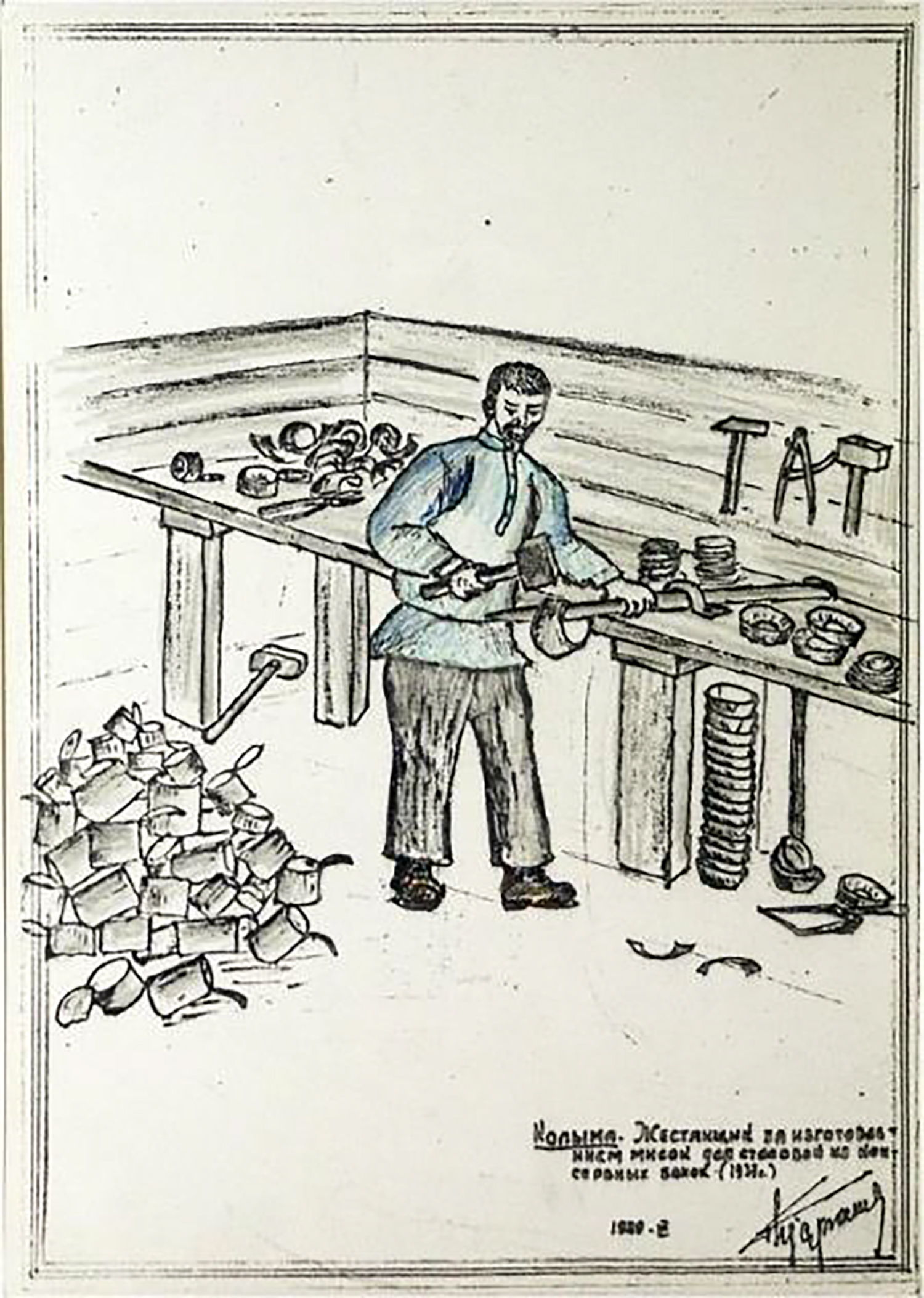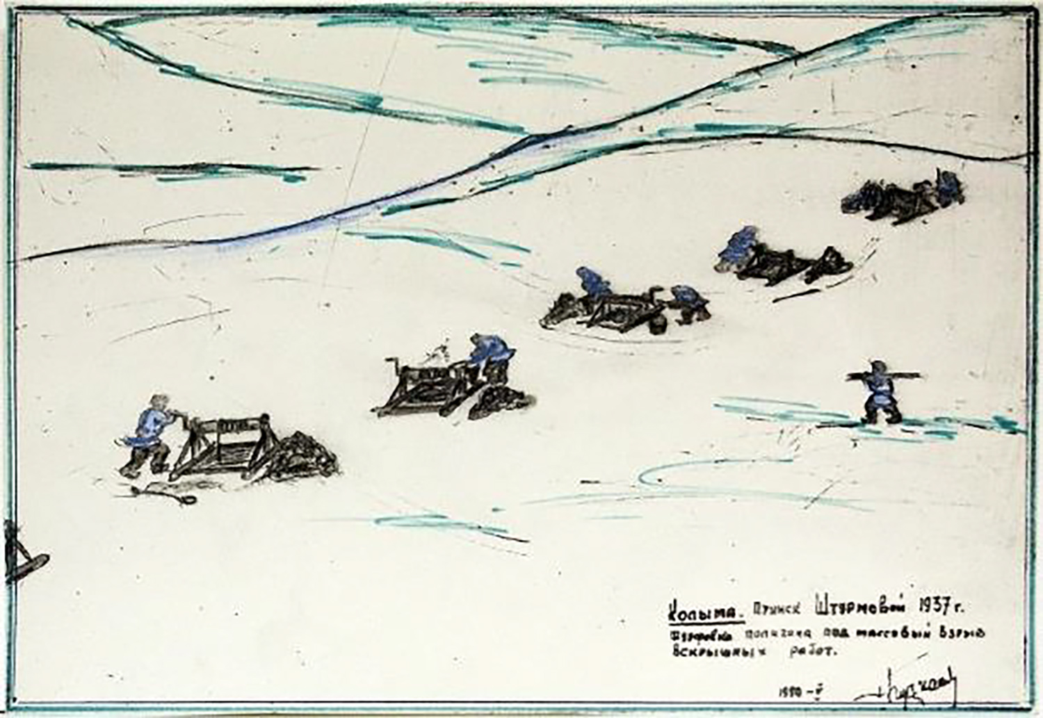 "Обнаружив ошибку, я задумался. Знал, что труд никто читать не будет. Если кто и вздумает познакомиться с докладом, то прочитает на русском языке. И черт меня дернул посоветоваться с главным редактором Западно-Сибирского краевого издательства Гольдбергом. Не раздумывая, он дал указание весь тираж сжечь, исправить набор и отпечатать все заново. Вечером в гостинице я встретился с заведующим Горно-Шорским районным отделом образования Павлом Гуриновым. Он поинтересовался, почему я задерживаюсь здесь. Я рассказал все, как было. И вот факт уничтожения тиража сталинского доклада стал достоянием компетентных органов..." – вспоминал спустя годы бывший политзаключенный. В 1995 он выпустил книгу о Колыме "Призраки колымского золота" и серию рисунков "Колымская эпопея".