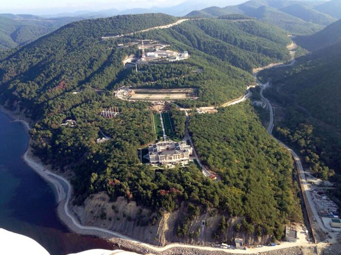 Символом российской коррупции можно считать самую крупную и самую роскошную недвижимость — дворец президента Путина в 20 км от Геленджика. Проект начали строить в 2005 году, площадь участка почти 70 гектаров, дворец площадью 17,7 тысяч квадратных метров. Вне дворца расположены дендрарий и оранжерея, подземный ледовый дворец, амфитеатр, отдельный гостевой дом, автозаправочная станция, 80-метровый мост и специальный тоннель внутри горы.