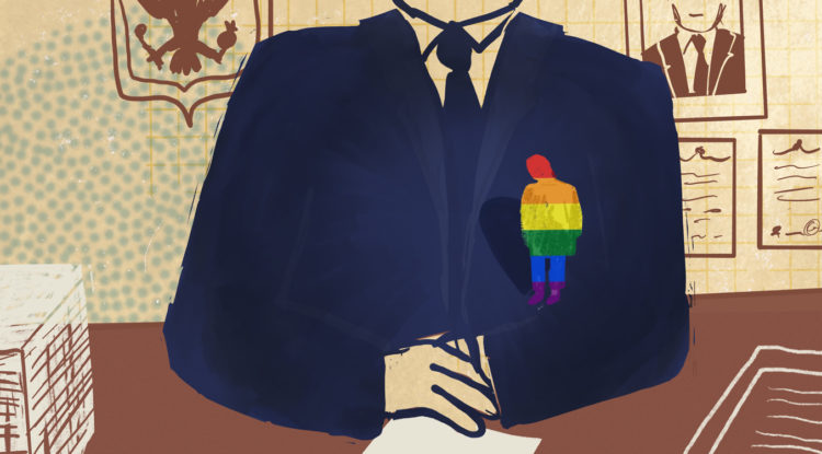 Гомофобия стала официальной политикой российского государства: власти называют ЛГБТ-людей экстремистами, на гей-клубы проводят полицейские облавы, людей сажают в тюрьму за поцелуи однополых пар на публике. При этом во власти продолжает работать множество гомосексуалов, которые надеются, что их это не коснется, или сами проводят в жизнь законы, нарушающие их же права. О том, почему они продолжают сотрудничать с государством, которое считает, что их быть не должно, «Холод» поговорил с геем, который больше шести лет работает в органах власти.