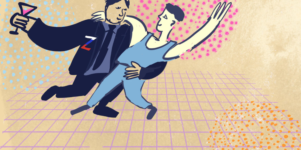 Но оказалось, конечно, что от политики не спрятаться. Заниматься провоенной агитацией в соцсетях, ставить букву Z на аватарку нас не заставляют — у нас адекватное начальство. Но вокруг этого полно. Недавно я вышел пообедать в кафе, а там — чиновник, про которого я знаю, что он гей, вместе с молоденьким парнем. На парне — кроссовки Balenciaga, на чиновнике — пиджак с приколотым к нему огромным значком в виде буквы Z на весь лацкан.