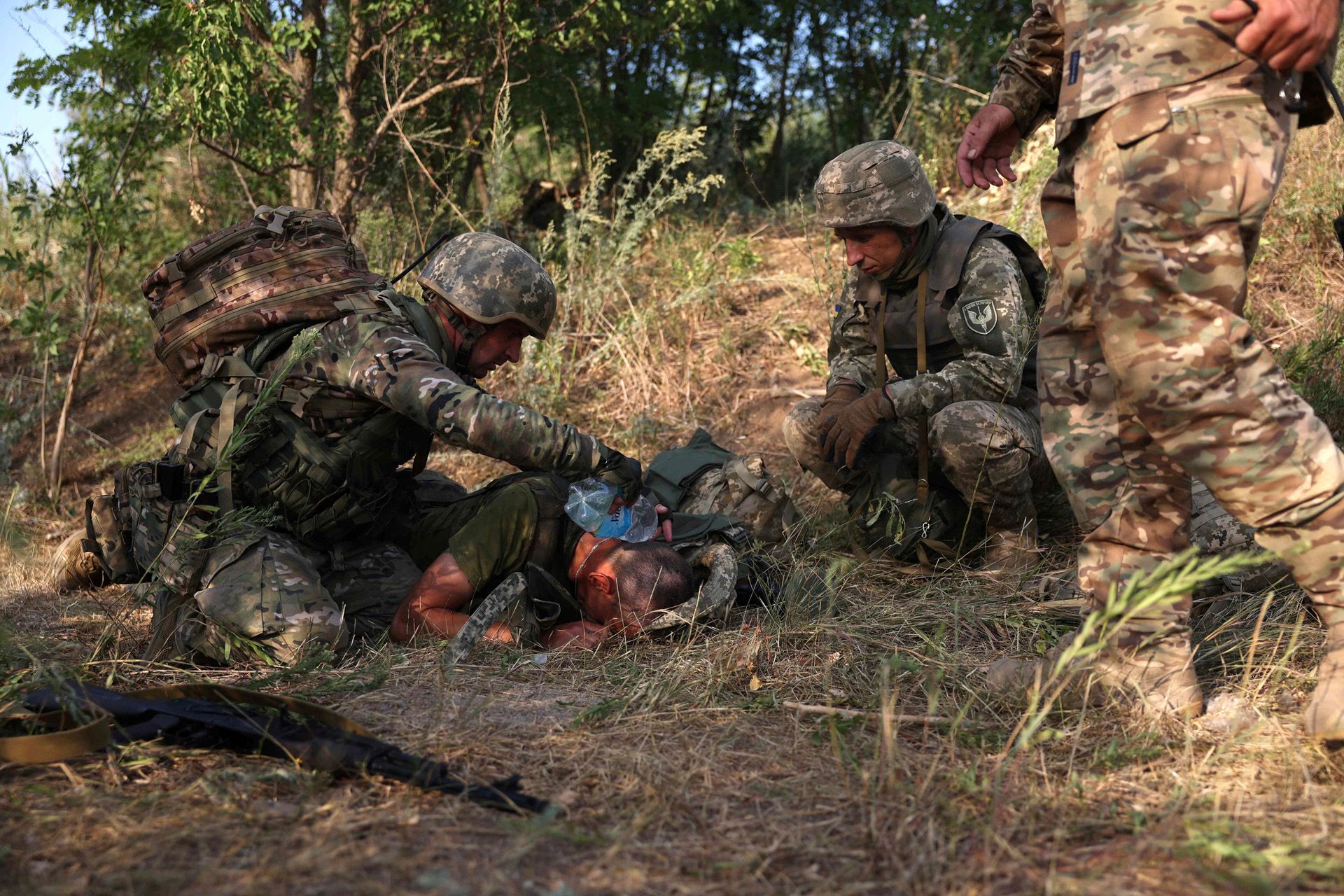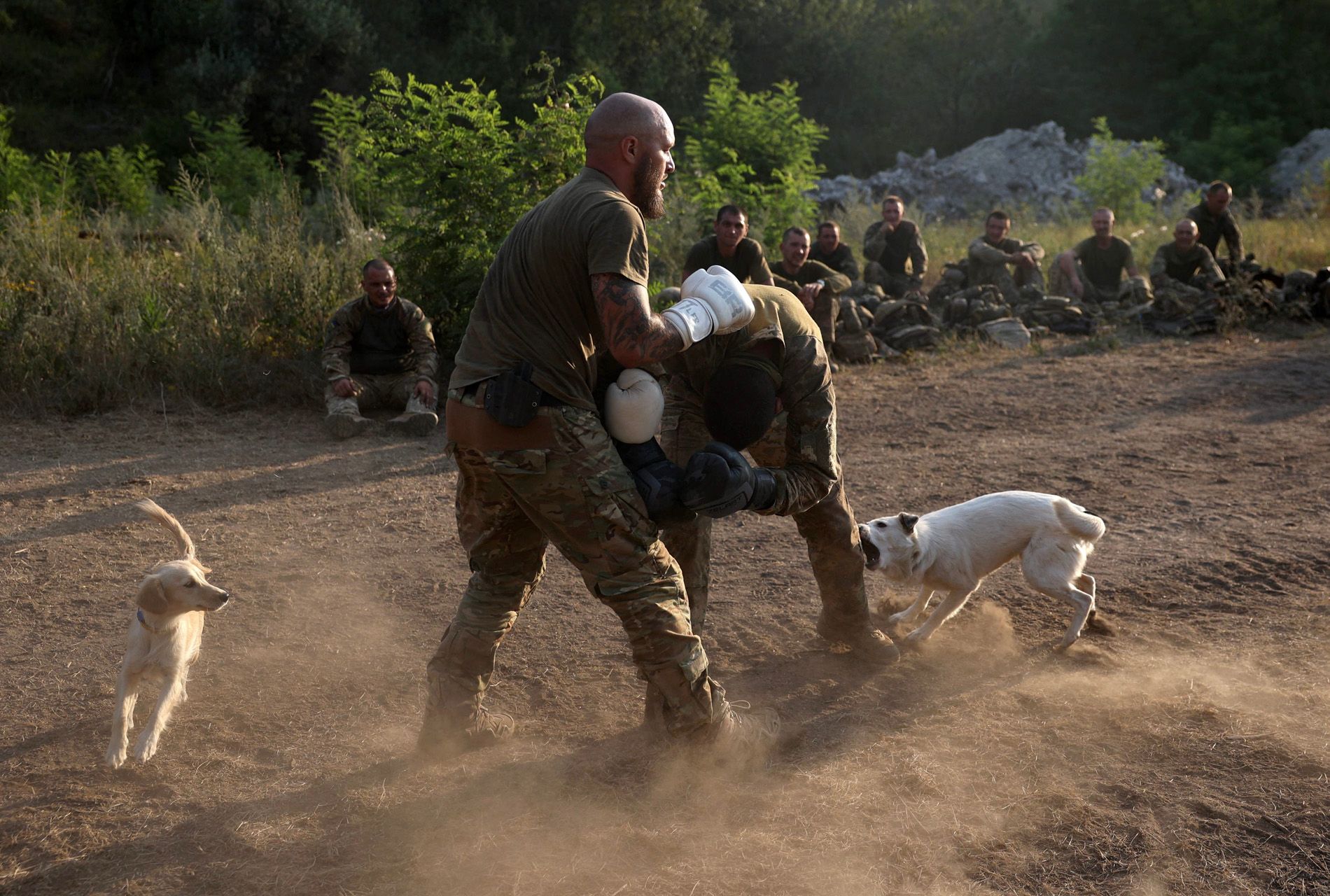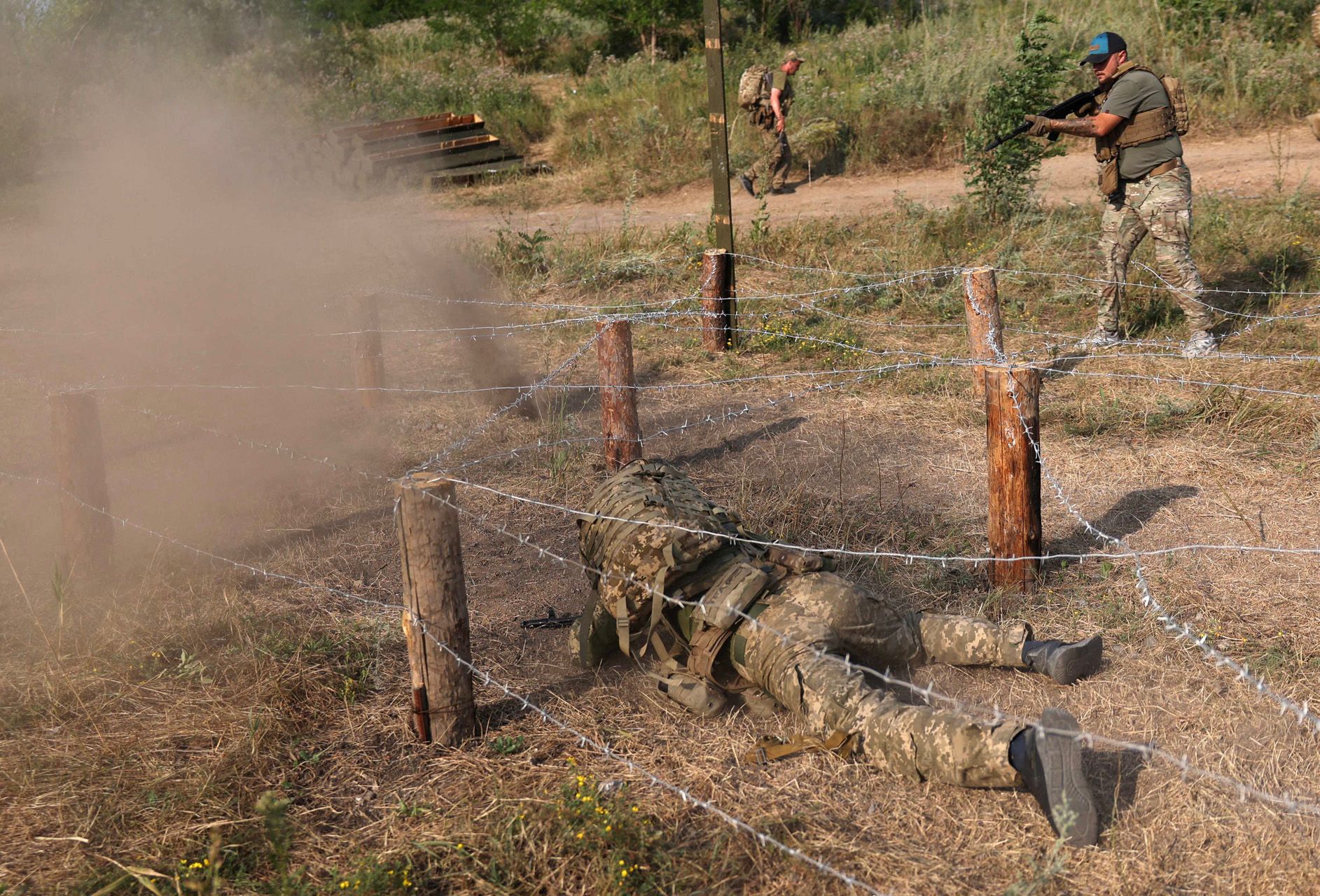На этой фотосъемке — военнослужащие спецбатальона «Шквал» проходят военную подготовку в составе 28-й отдельной механизированной бригады ВСУ. Снимки сделаны 26 июля в Донецкой области. Точное место проведения учений не раскрывается.
