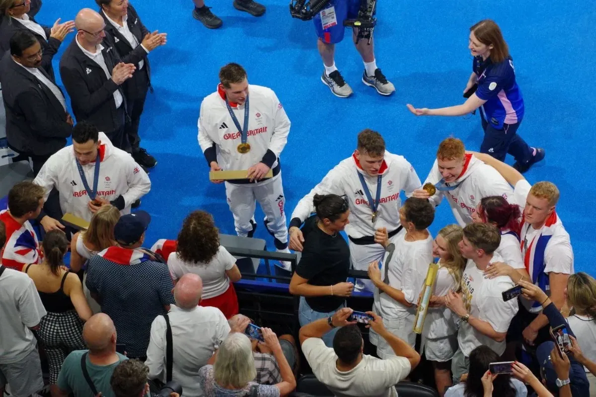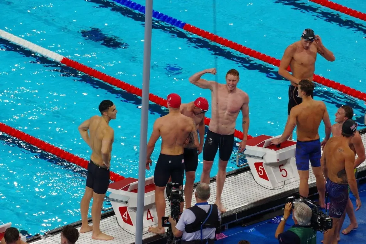 На другой переполненной парижской арене — La Defense, где проходят соревнования по плаванию, — английская сборная вчера достаточно уверенно опередила в эстафете 4 по 200 вольным стилем пришедших вторыми американцев. И защитила титул, завоеванный в Токио. Джеймс Гай, Том Дин, Мэттью Ричардс, Данкан Скотт после награждения еще долго и радостно бегали вокруг бассейна, братаясь с болельщиками и позируя занявшим позиции с нескольких сторон сотням фотографов с «пушками».