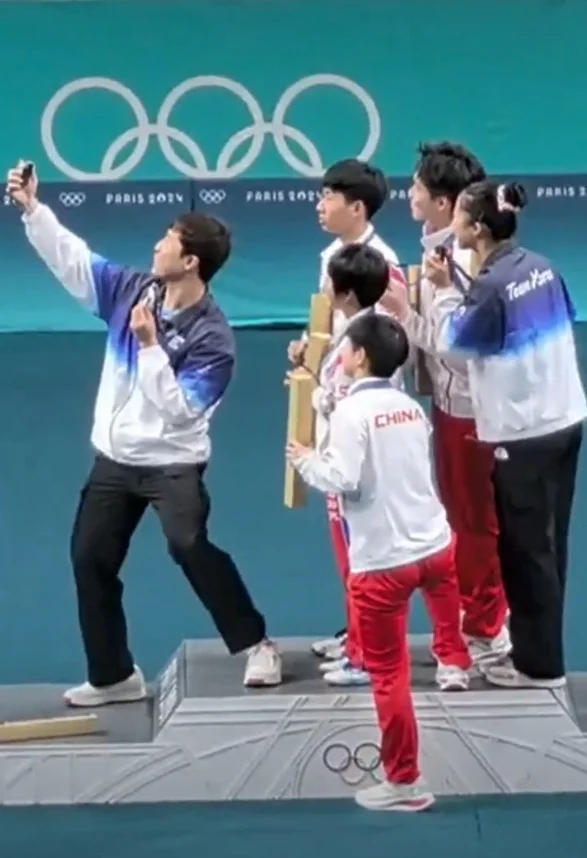 На фотографии, сделанной южнокорейцем Лим Чон Хуном, бронзовым призером соревнований в паре с Шин Ю Бин, изображен не только его товарищ по команде, но и северокорейская пара Ри Джонг Сик и Ким Кум Йонг, занявшая второе место, а также китайцы Ван Чуцинь и Сунь Инша (золото).