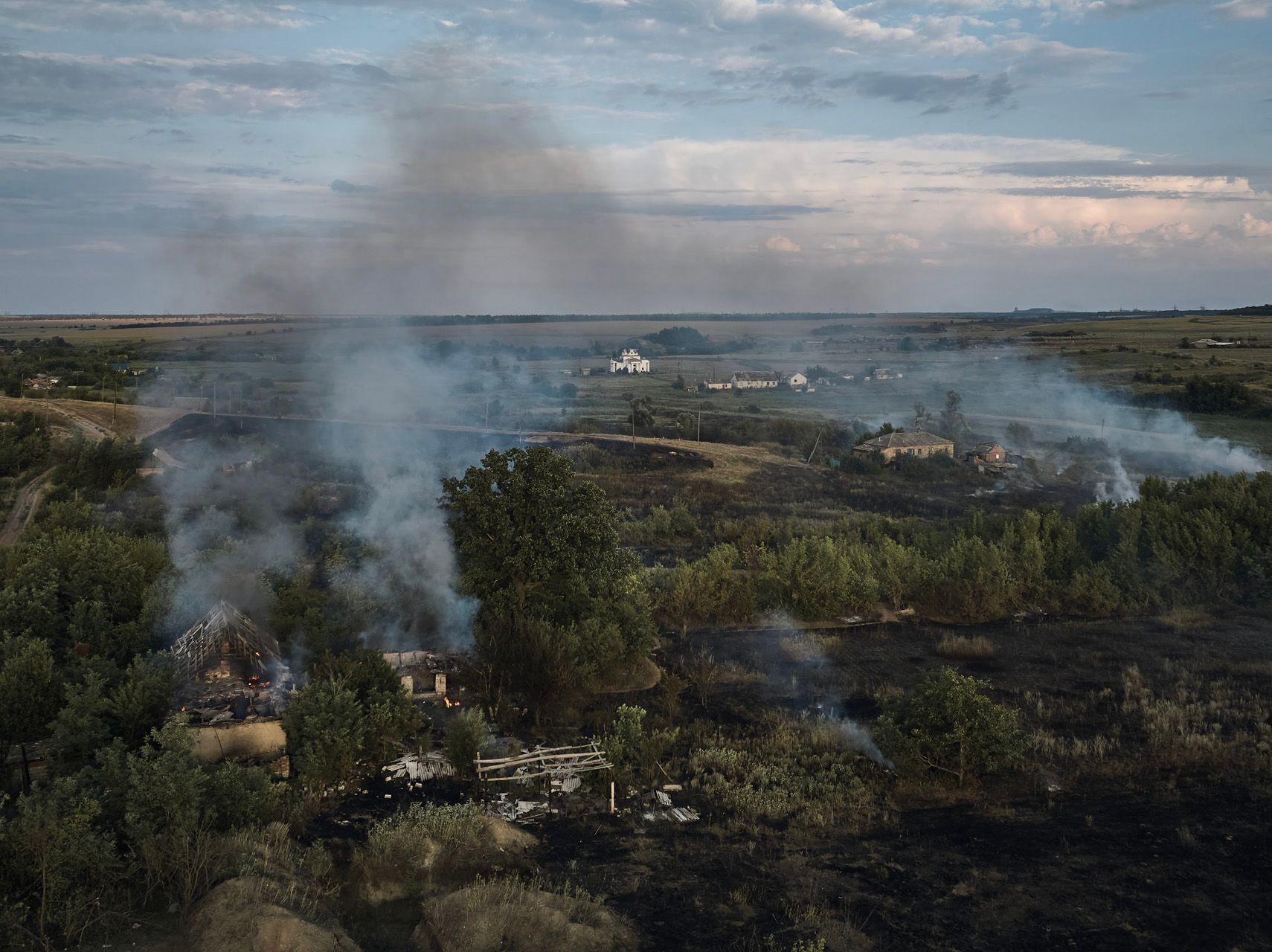 Российские войска продолжают наступление на фронте в Украине, в том числе в Донецкой области. Согласно анализу «Медузы», главный удар армия РФ наносит в центре Донбасса на стокилометровой дуге от Часова Яра до Красногоровки. Несмотря на боевые действия, в некоторых населенных пунктах, находящихся недалеко от линии фронта, продолжают жить люди. Под обстрел попадают жилые дома и другие здания, в том числе храмы (только за время полномасштабного вторжения пострадало 110 религиозных сооружений в одной только Донецкой области). О жизни прифронтовых городов — в фотогалерее «Медузы».