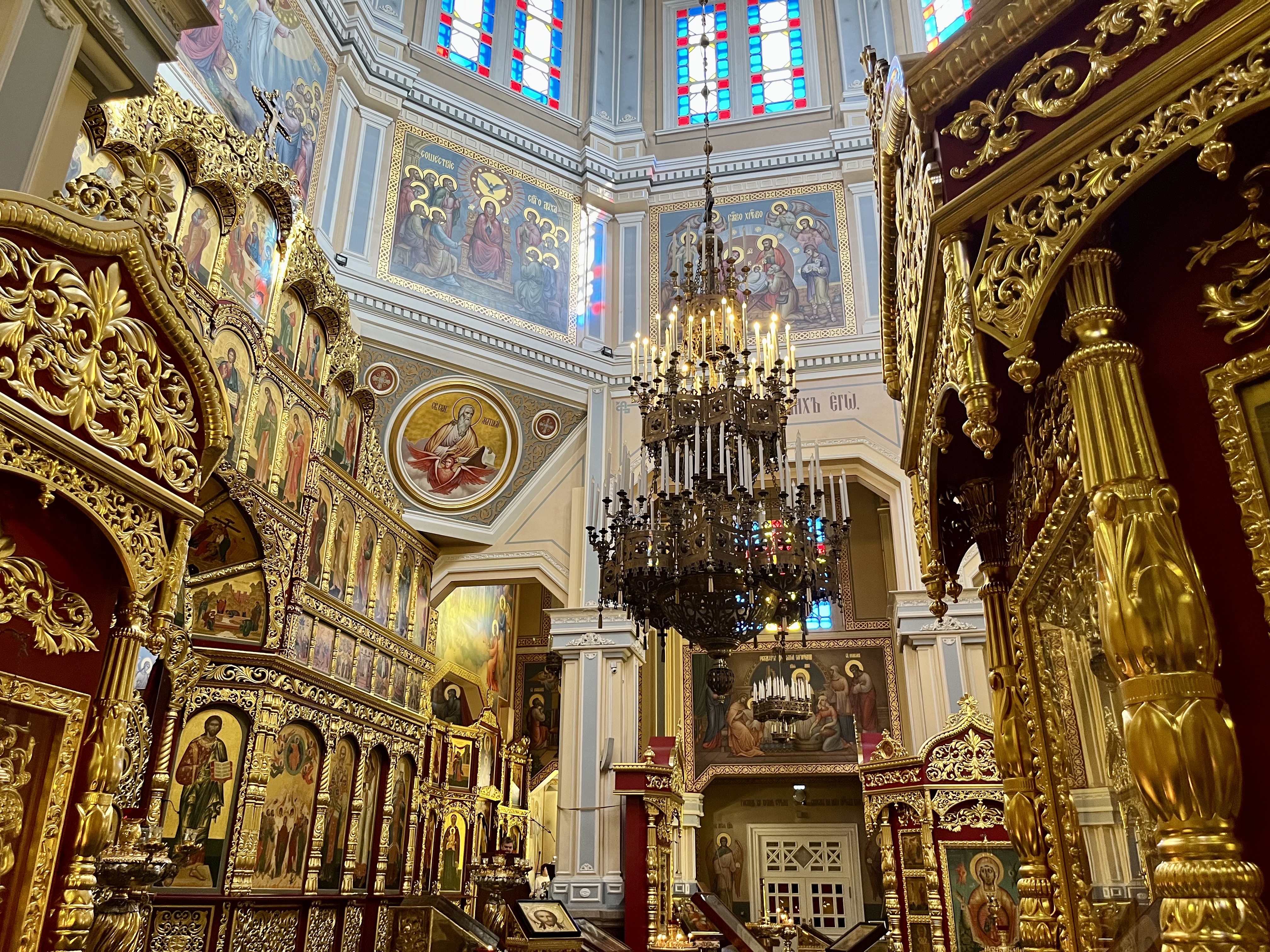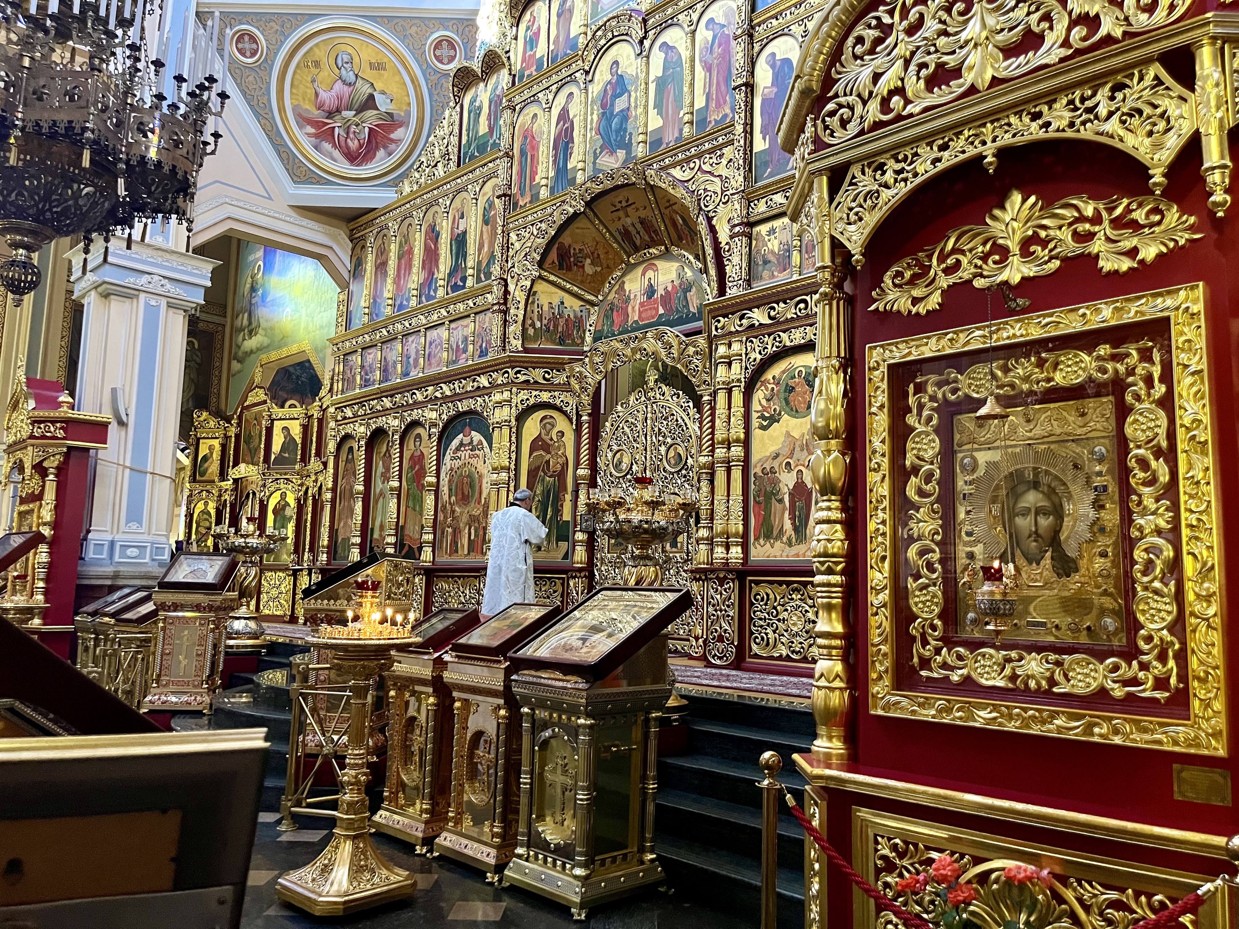– А какому оригиналу? Собор был открыт в 1907 году и внутри он даже не был оштукатурен, потому что, согласно снипам того времени, 10 лет после постройки такого масштаба деревянные здания должны как бы "усаживаться". Поэтому собор расписан не был, но были хлудовские наброски, которые максимально использовались при росписи храма.