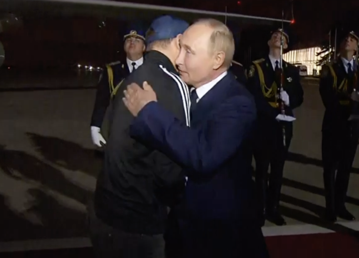 - На видео, опубликованном Кремлем накануне вечером, Красиков первым сходит с самолета, прибывшего в Москву из Анкары. Путин, который впервые лично приехал в аэропорт встречать участников такого обмена обнимает Красикова.
