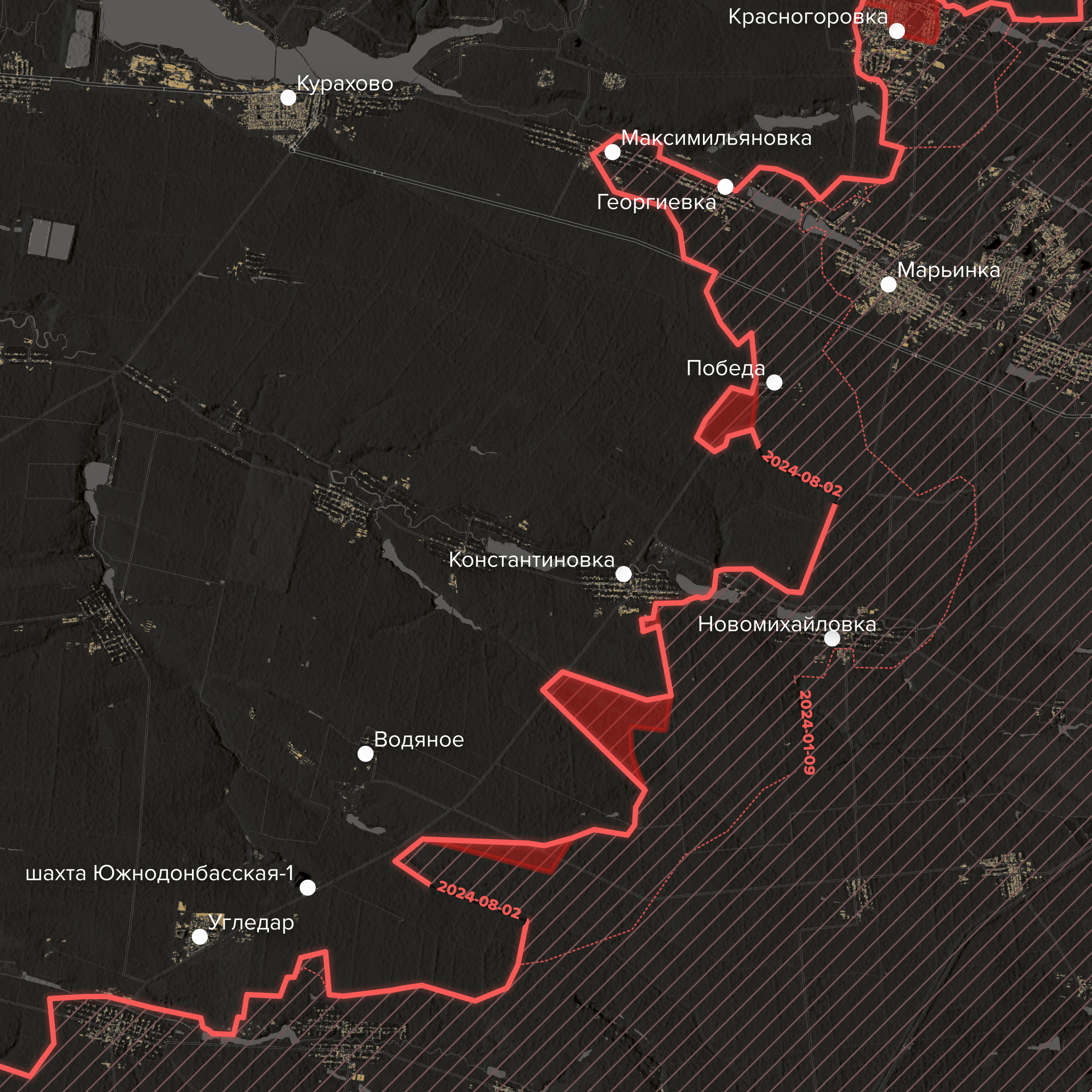- Дорога, по которой ранее снабжалась Угледарская группировка, идет от Курахово через село Констаниновка — и далее на юг до Угледара мимо высоких и крепких промышленных помещений шахты Южнодонбасская-1 и Южнодонбасская-3 в селе Водяное. Российская авиация с зимы 2022 года постоянно бомбила шахты, однако это не смогло нарушить украинскую оборону в Угледаре.