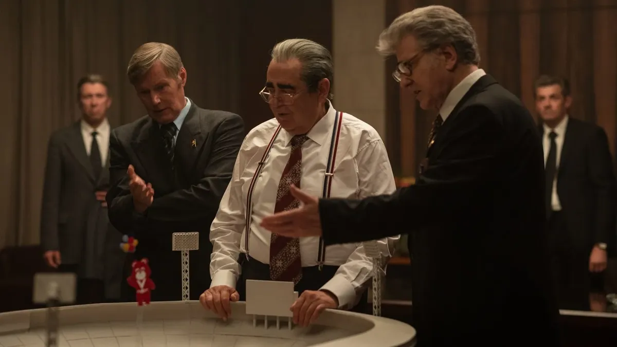 В исполнении Юрия Стоянова фарсовый генсек словно только что прибыл на экран из шоу «Городок» — шамкающий, уже неважно соображающий престарелый лидер любуется олимпийским Мишкой