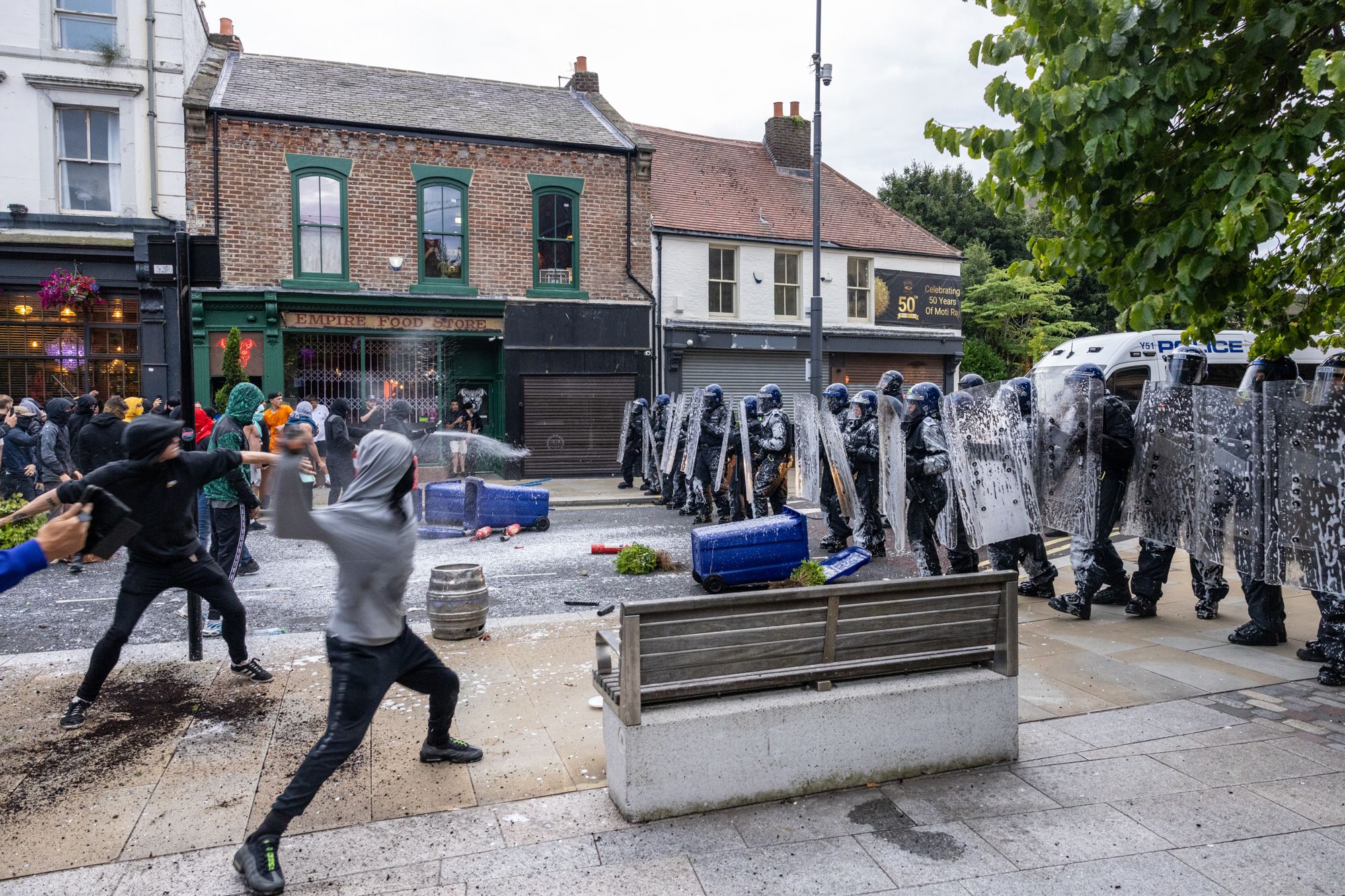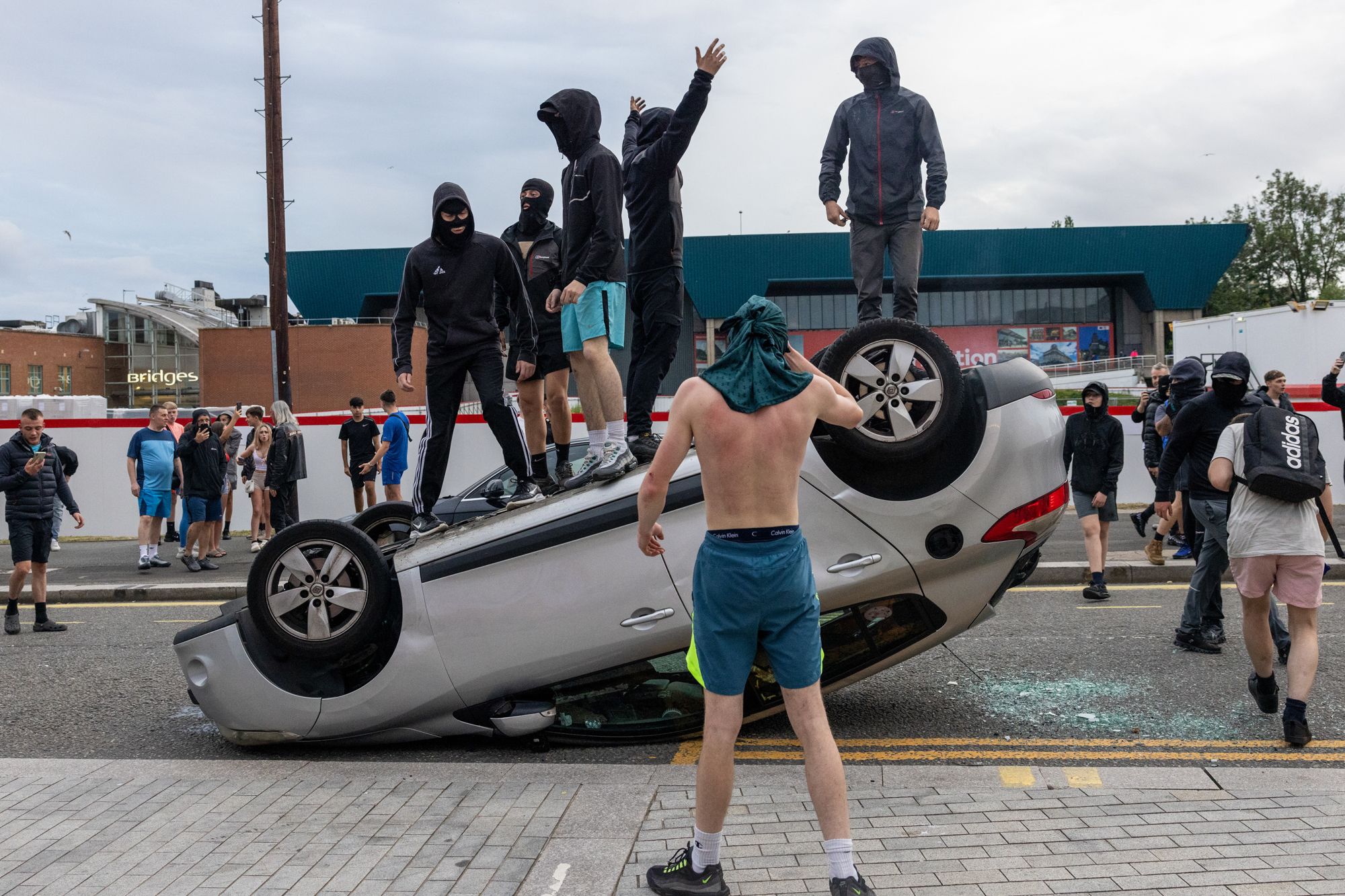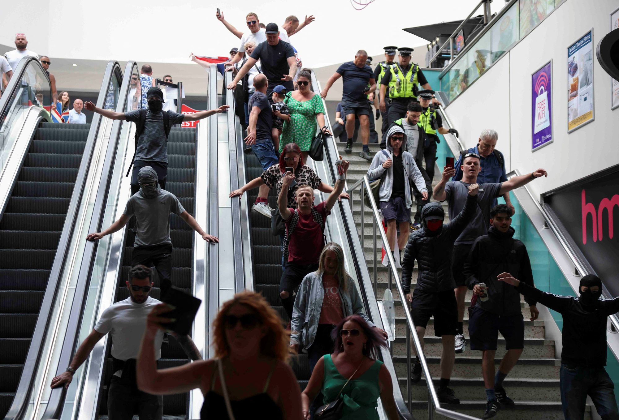 В течение недели беспорядки происходили в Лондоне, Бристоле, Белфасте, Саутпорте, Халле, Ливерпуле, Манчестере, Сток-он-Тренте, Блэкпуле, пишет The Guardian. Демонстранты вступали в столкновения с мигрантами и полицией, громили полицейские участки, магазины и мечети, поджигали различные общественные заведения. В ряде городов в ответ на выступления националистов были организованы антифашистские демонстрации.