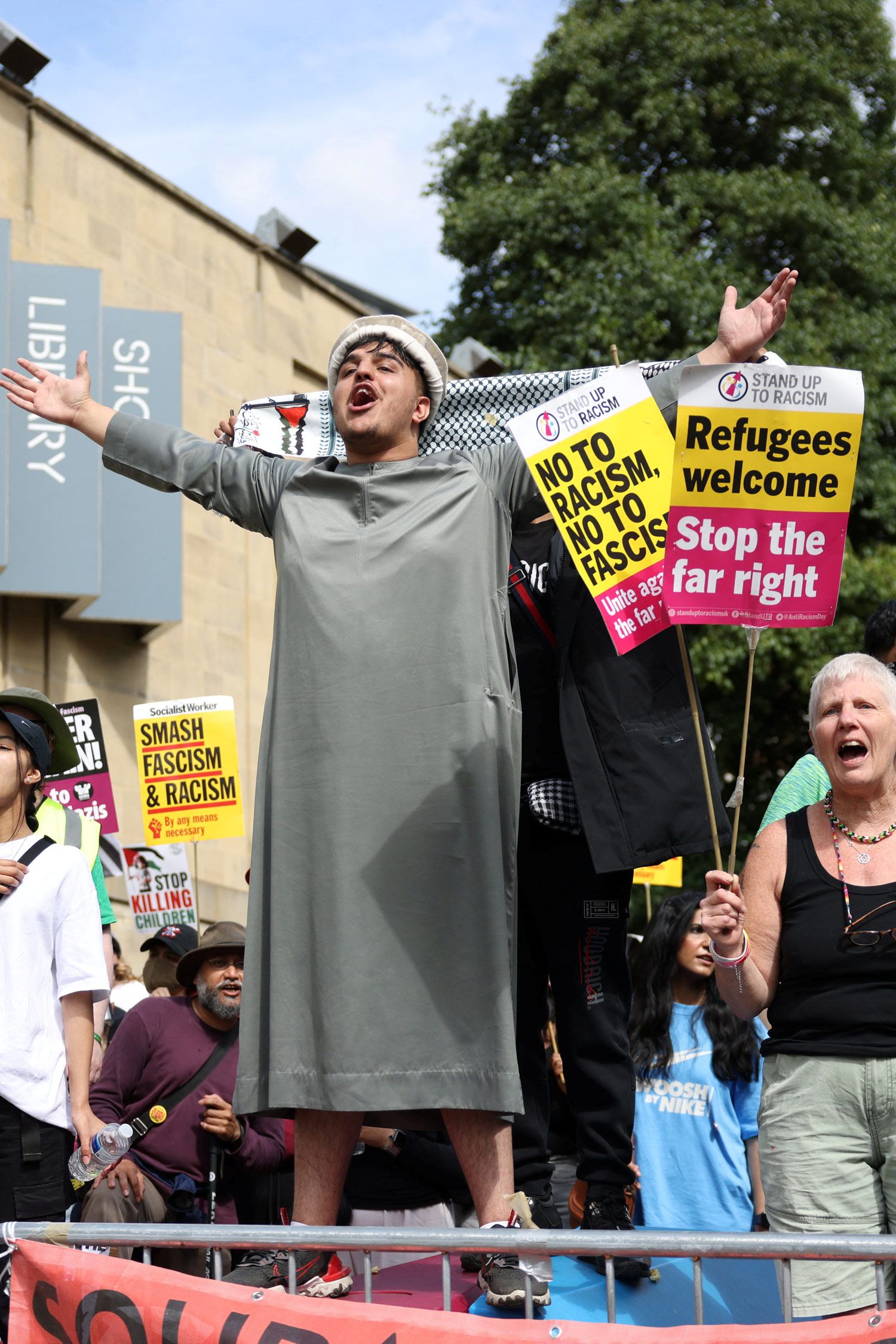 На траурную церемонию по погибшим в Саутпорте пришли националисты из числа сторонников антиисламской Лиги обороны Англии (English Defence League) — они использовали мероприятие как повод для нападения на местную мечеть. В ходе беспорядков пострадали как минимум 39 полицейских.