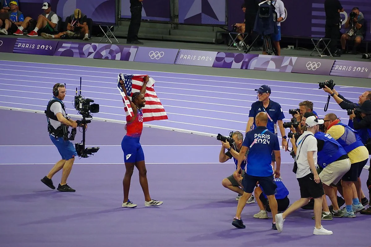 Настроение мое в этот вечер было очень хорошим, несмотря на то что он, вечер, как обычно на ОИ, закончился за полночь. Тем более что мне не нужно было выполнять обязательное для аккредитованных фотографов упражнение: бегать с огромной пушкой и сумкой с объективами за «самым быстрым человеком планеты». За только что выигравшим 100-метровку у мужчин американцем по имени Ноа Лайс.