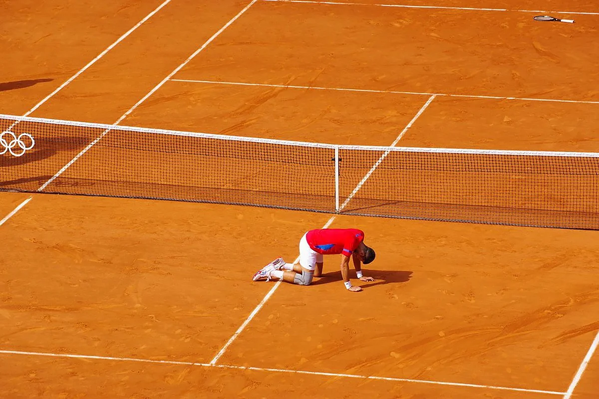 Игравший свой финал на следующий день герой всея Сербии и ходячая легенда мирового тенниса*, безусловно, обращался к небесам перед матчем. «Улики» оставил сам: крестился и перед выходом на корт, и уже потом — на пьедестале. Волноваться было о чем: с другой стороны корта 37-летнему Джоковичу противостоял 21-летний испанец Карлос Алькарас. Игрок столь же изобретательный и универсальный, с такой же титановой волей. И одним маленьким преимуществом перед Новаком: у него не было травмы (Джокович играл с тейпом на правом колене), и вообще — пробег в этой теннисной жизни в десятки раз меньше. А Джоковичу уже просто некуда было бежать: практически нет сомнений, что он вряд ли мог бы рассчитывать на олимпийскую победу еще через четыре года**. Так что буквально: сейчас или никогда. С пятой попытки.