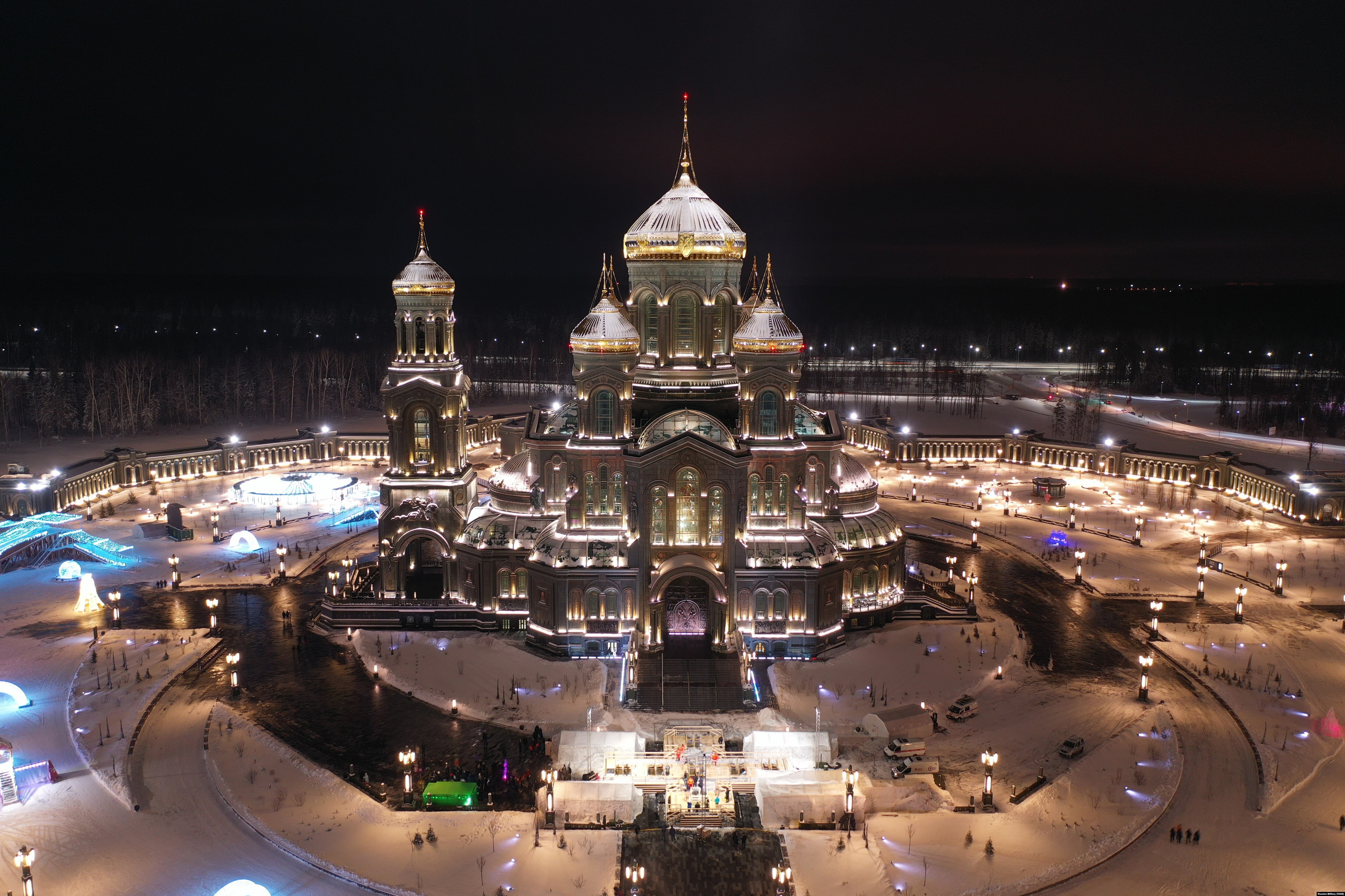 Парк "Патриот" был заложен в 2014 году по распоряжению Сергея Шойгу, который на тот момент занимал пост министра обороны. Парк состоит из множества объектов, самые значительные из них – это музейно-храмовый комплекс Вооруженных сил России, партизанская деревня, музейная площадка и центр военно-тактических игр. На сегодняшний момент площадь парка составляет более 5 тысяч гектаров. На фресках в здании храма ВС РФ присутствуют портреты Владимира Путина и Сергея Шойгу. Портрет Иосифа Сталина с фрески был убран после многочисленных обращений православных и консервативных деятелей.
