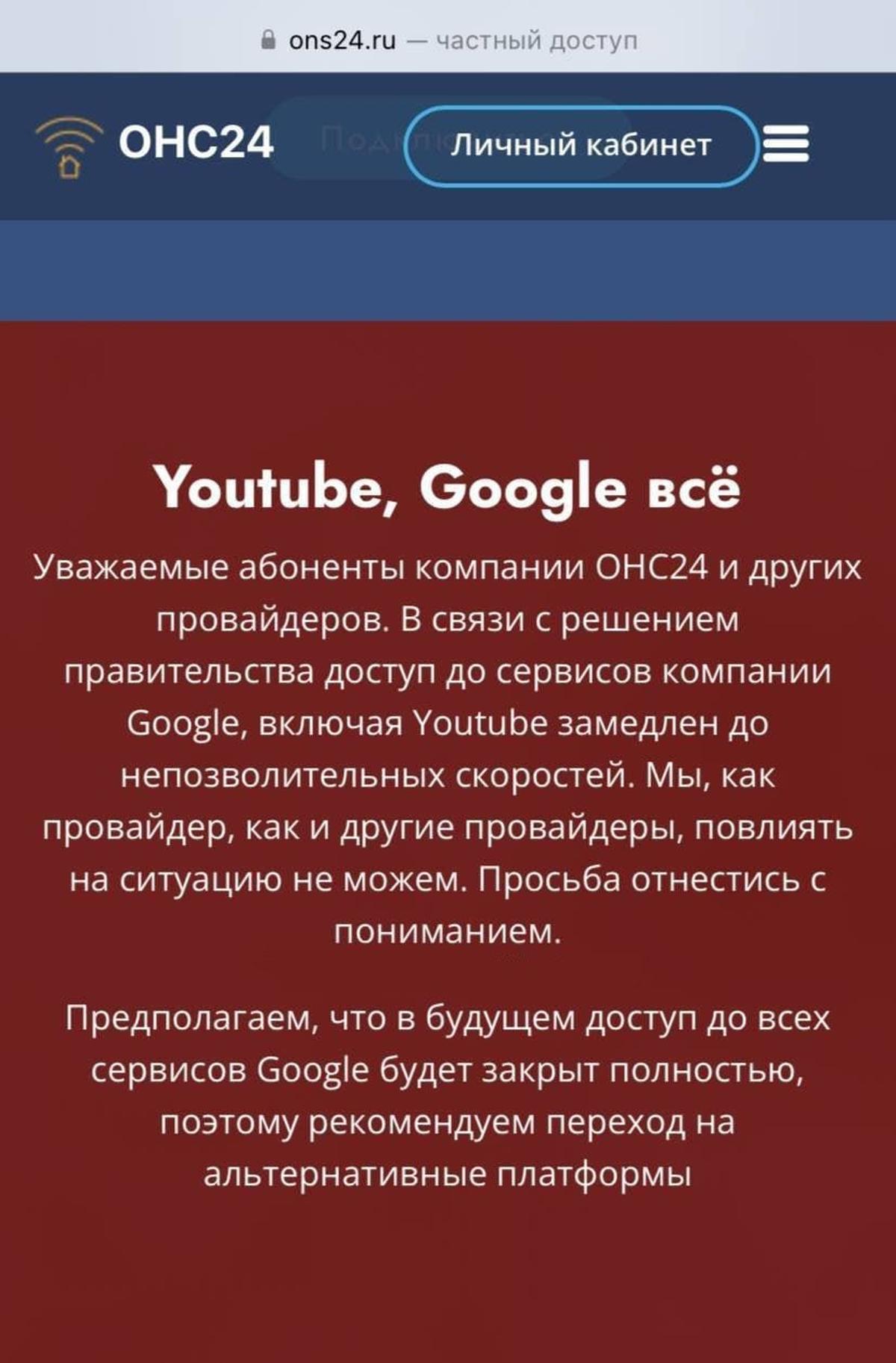 В частности, сообщение о замедлении Google и YouTube появилось на сайте подмосковного ОНС24.