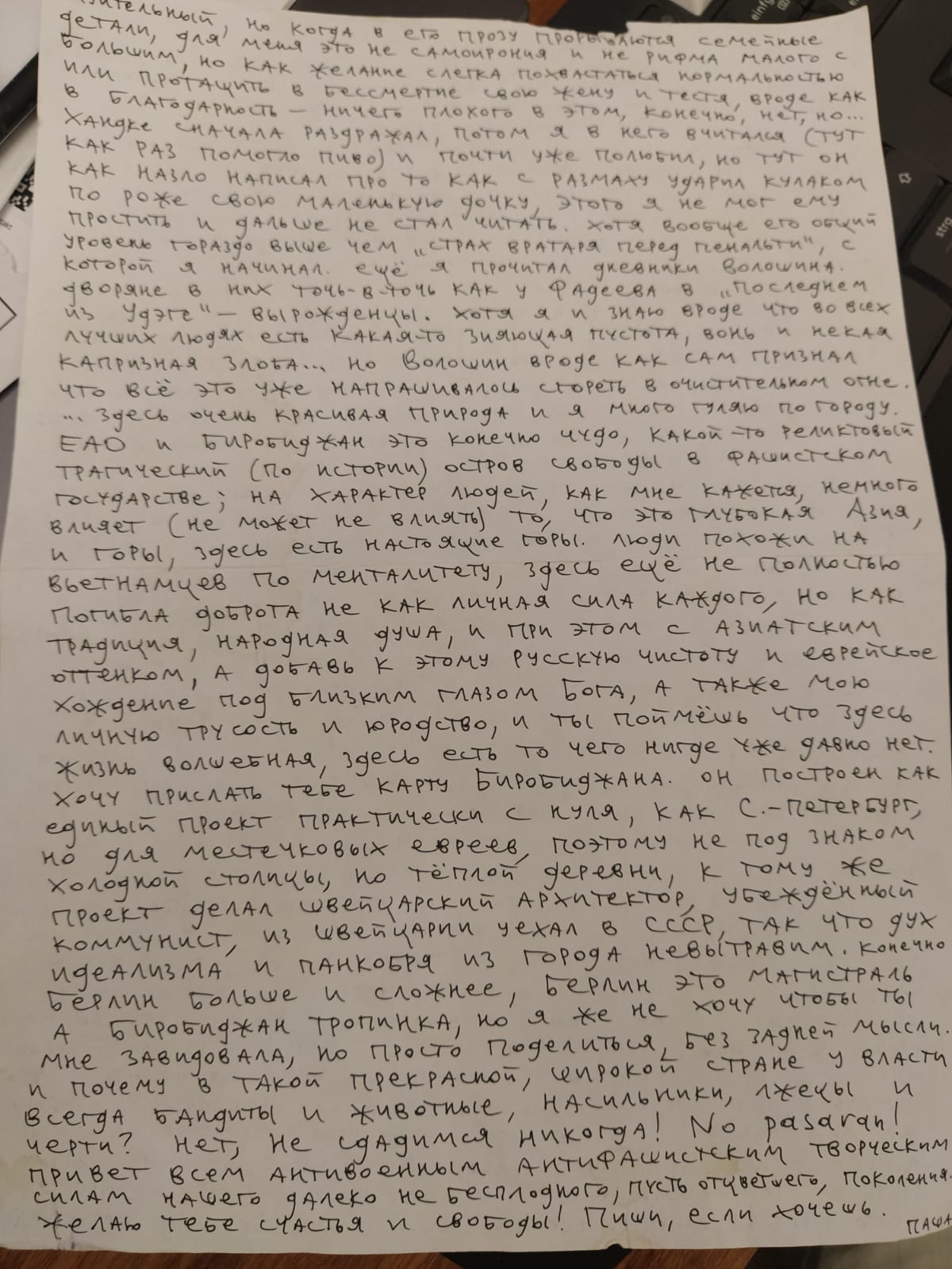 В одном из последних писем подруге Ольге о ситуации в России Павел пишет так:
