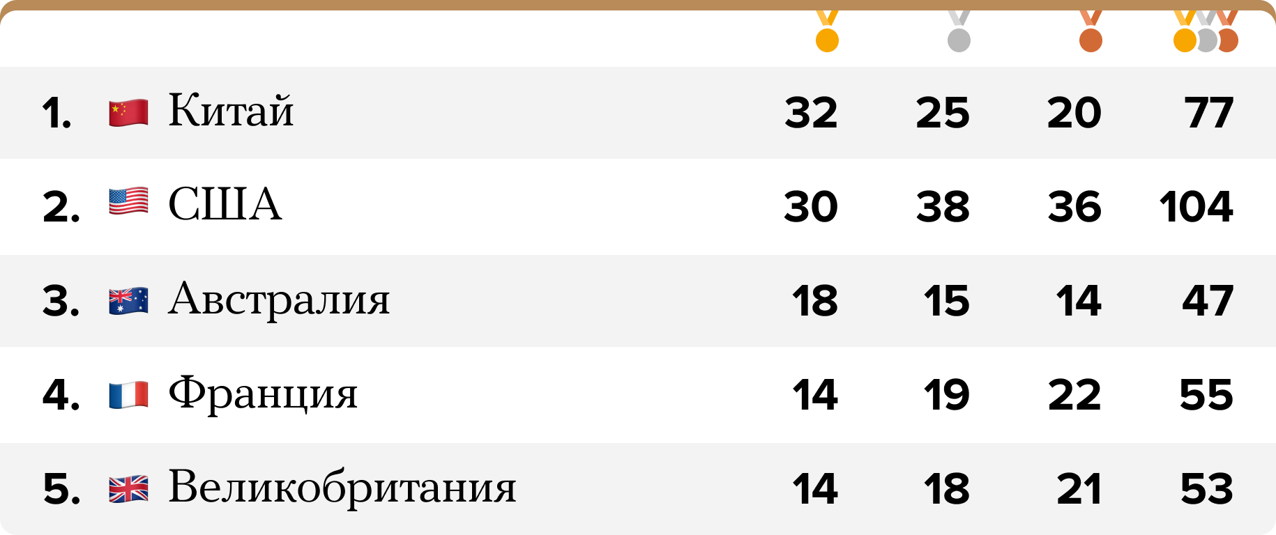Китайские спортсмены в дневную сессию 9 августа взяли два золота (в прыжках в воду и настольном теннисе), что позволило сборной Китая опять оторваться от США в таблице медального зачета. Каноист Захар Петров второй день подряд финишировал четвертым — и на этом российские спортсмены завершили свои выступления на Олимпиаде. У них только одна медаль — серебро Мирры Андреевой и Дианы Шнайдер в парном женском теннисе.