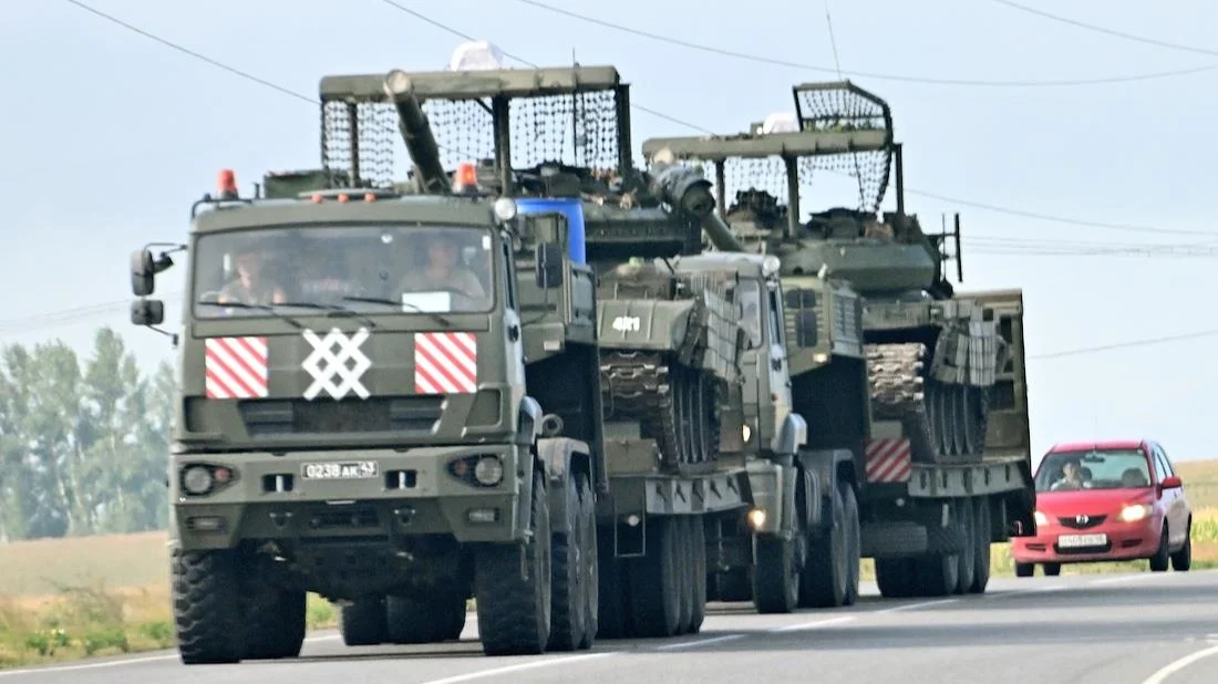 Перевозка военной техники по трассе между Курском и Суджей. Фото: Анатолий Жданов / Коммерсантъ