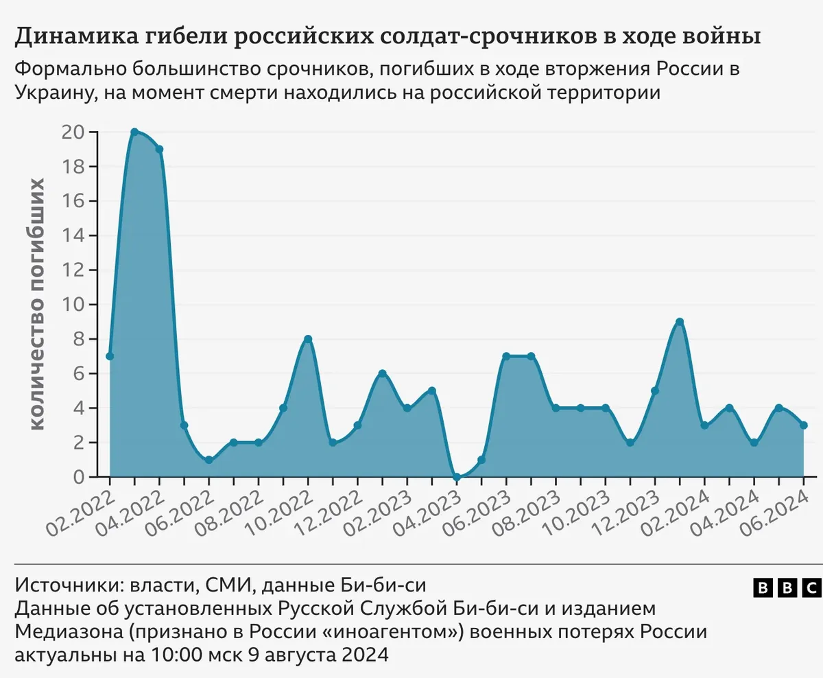 BBC: минимум 159 российских срочников погибли с начала полномасштабного вторжения в Украину