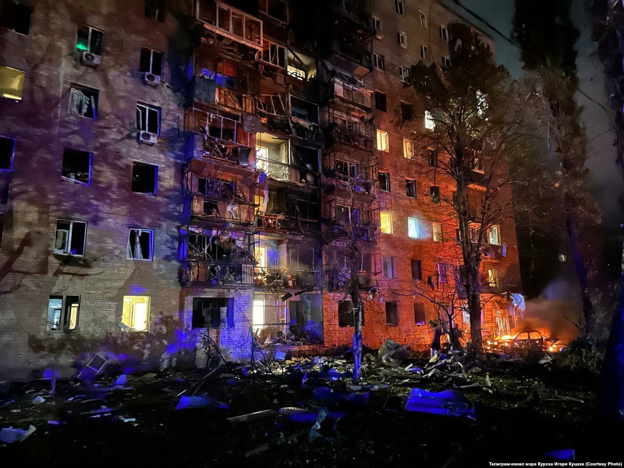 Обломки сбитой украинской ракеты упали на многоэтажный дом в Курске, в результате пострадали 13 жителей. Об этом в своём телеграм-канале сообщил врио губернатора области Алексей Смирнов.