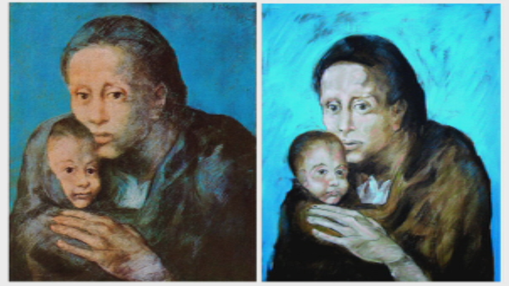 Пабло Пикассо «Мать с ребенком» (слева — оригинал, справа — копия Бельтракки)