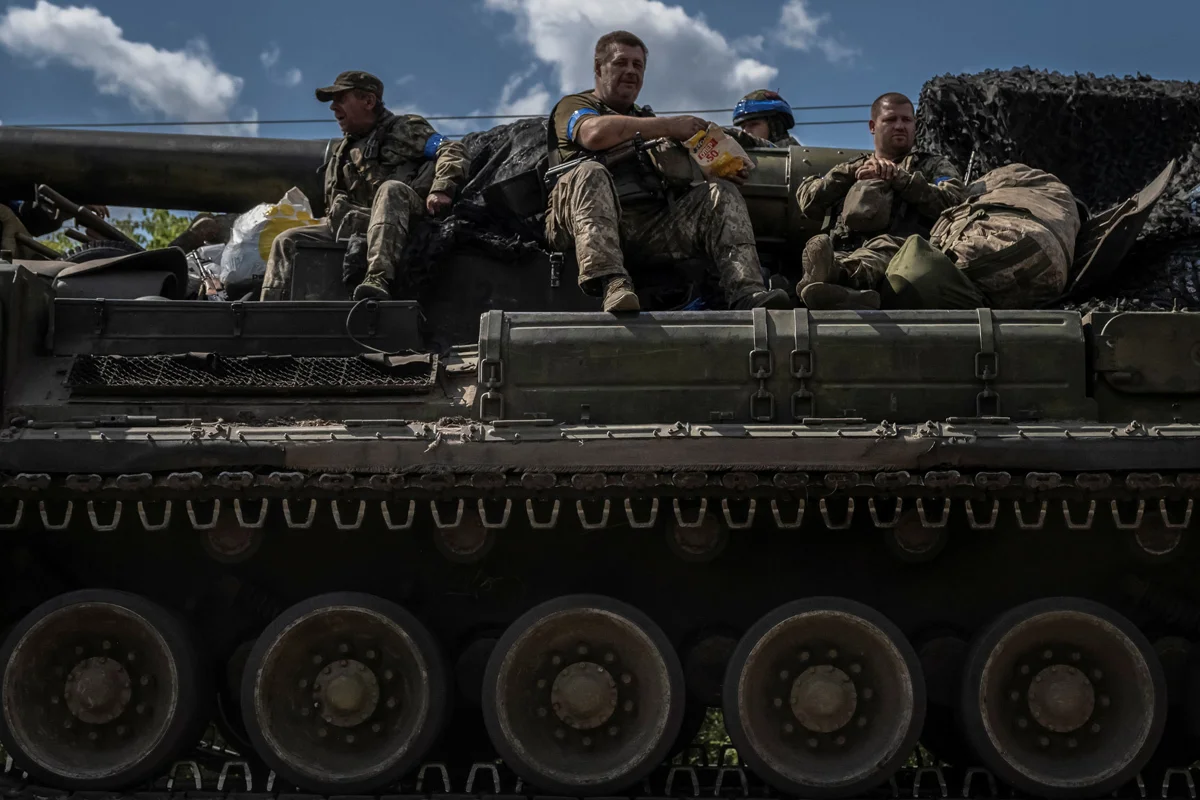 Ukrainian officers in the Sumy region near the border with Russia, 11 August. Photo: Vyacheslav Ratynskyi / Reuters / Scanpix / LETA