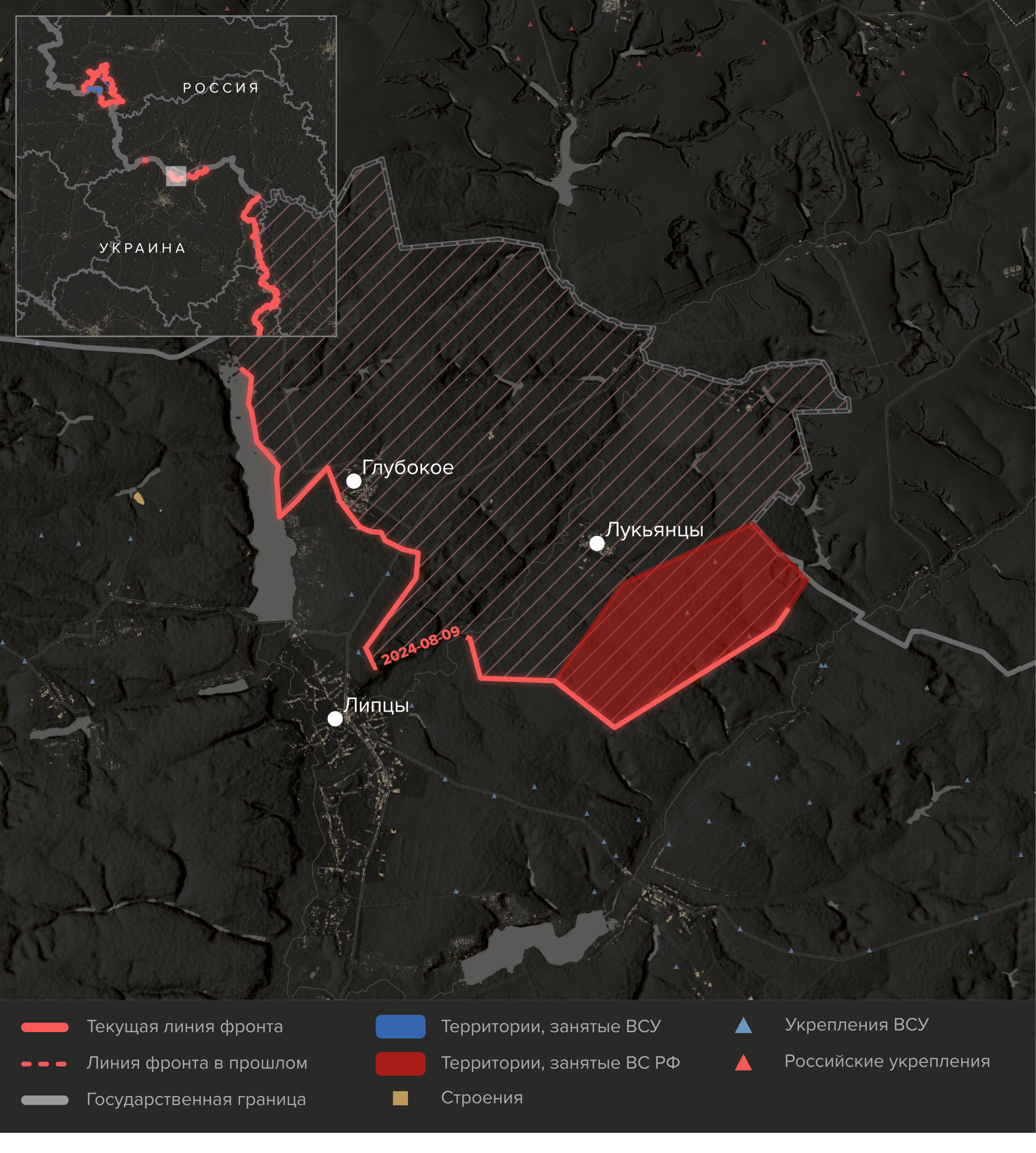 Российские силы заняли позиции ВСУ между Лукьянцами и Глубоким на Харьковском фронте, после того как командование ВСУ отправило воевавшее в этом районе подразделение в Курскую область