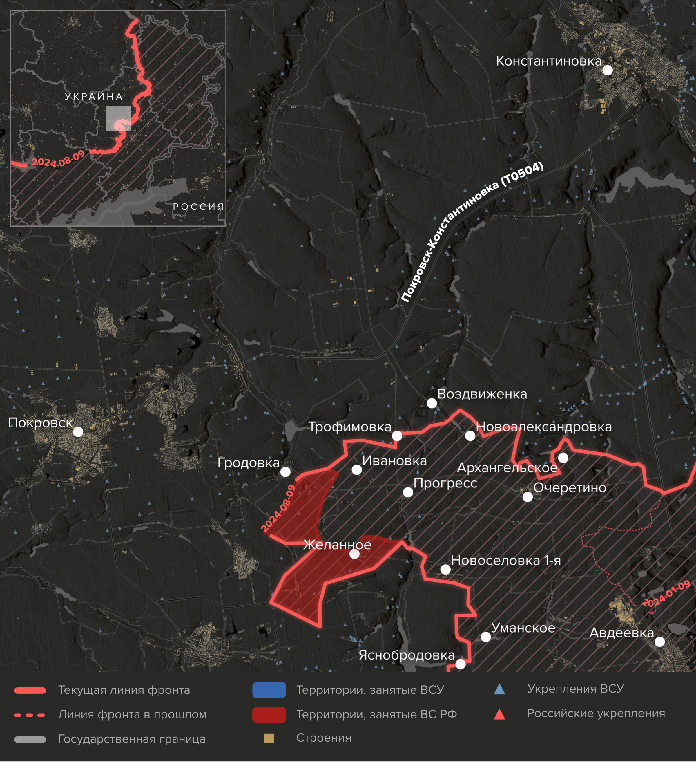 • Потеря района Покровска и Селидово приведет к тому, что украинские силы на этом участке будут отрезаны от снабжения из главной базы на востоке страны — Днепра.
