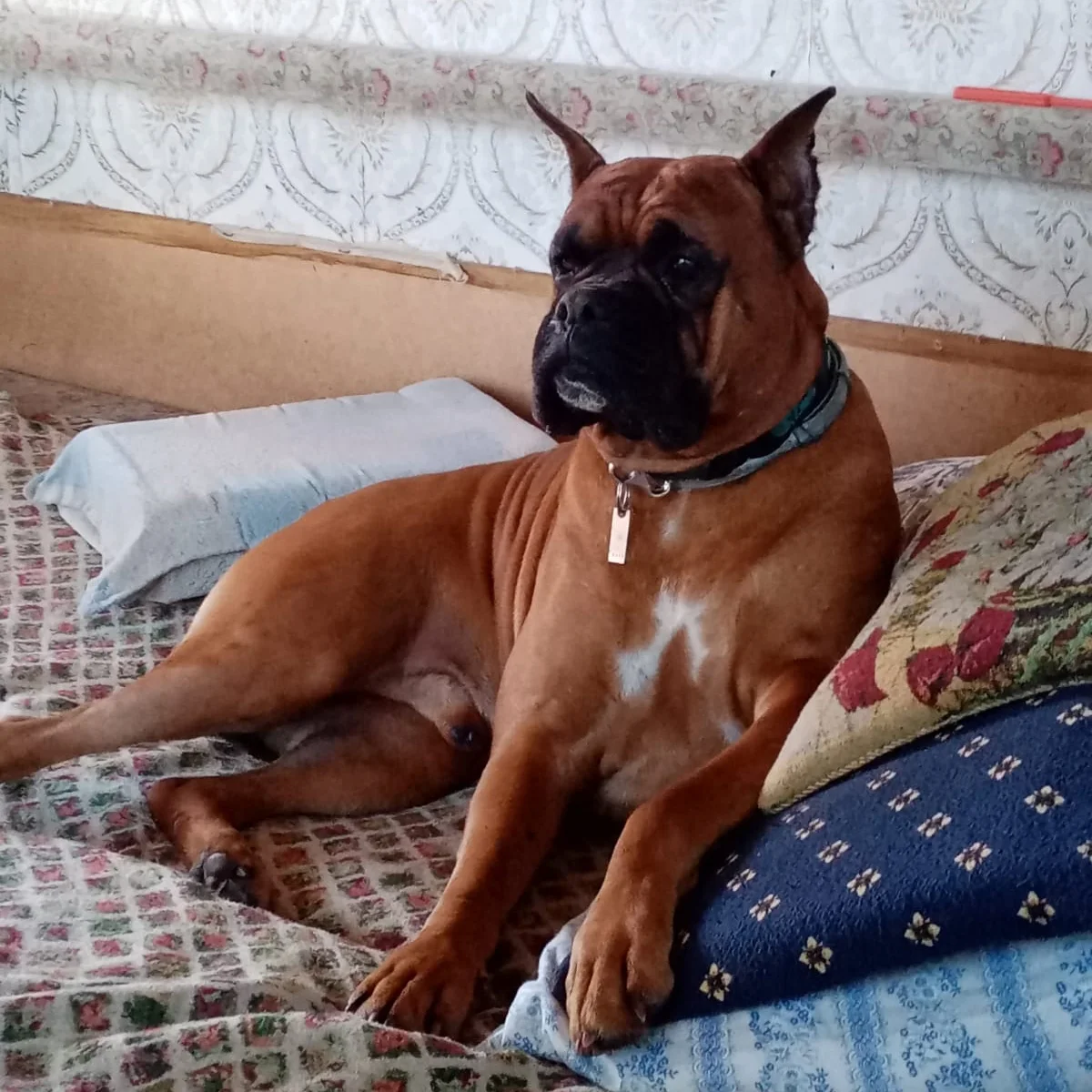 Буч — еще один из подопечных Алтаны, он обрел новую семью в Москве. Собаку нашли на одной из помоек в Мариуполе: Буч был истощен и прибился к людям в надежде получить еду. Последний год он живет у Марины и ее мужа. Семья уже 39 лет держит боксеров. Большинство из них забрали из приютов.