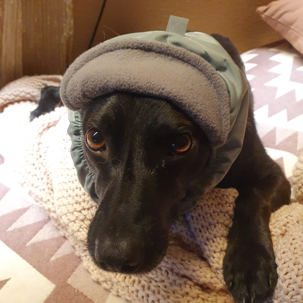 — Он всё время прячет нос, всё время боится, особенно громких звуков, грузовиков — таких больших фур дизельных, я думаю, что они напоминают ему военную технику. Они все боятся резких движений, повышенного голоса, взмахов рукой. Но главный триггер — мужчина в камуфляже. Впрочем, я однажды взяла линейку в руки, мне надо было отмерить ткань, и Чуня прижался к полу и бросился улепетывать под стол в соседнюю комнату. Я даже не сразу сообразила, что произошло. А еще у Чуни есть особенность, которую наблюдала и у некоторых других животных оттуда: он ест только с руки. Когда я его привезла, он был очень истощен и очень голоден, всё время просил еду, но при этом ел только хлеб и кошачьи консервы, самые дешевые. Понадобилось довольно долгое время, чтобы перевести его сначала на недорогие собачьи паучи, потом на нормальный влажный корм, а потом и на натуралку. При этом до сих пор, если он не носился целый день галопом по полям, не ев сутки до этого, он из миски есть не будет. Будет стоять рядом, смотреть умоляющими глазками, вилять хвостиком, но есть начнет, только когда сядешь рядом и будешь давать еду на ладони.