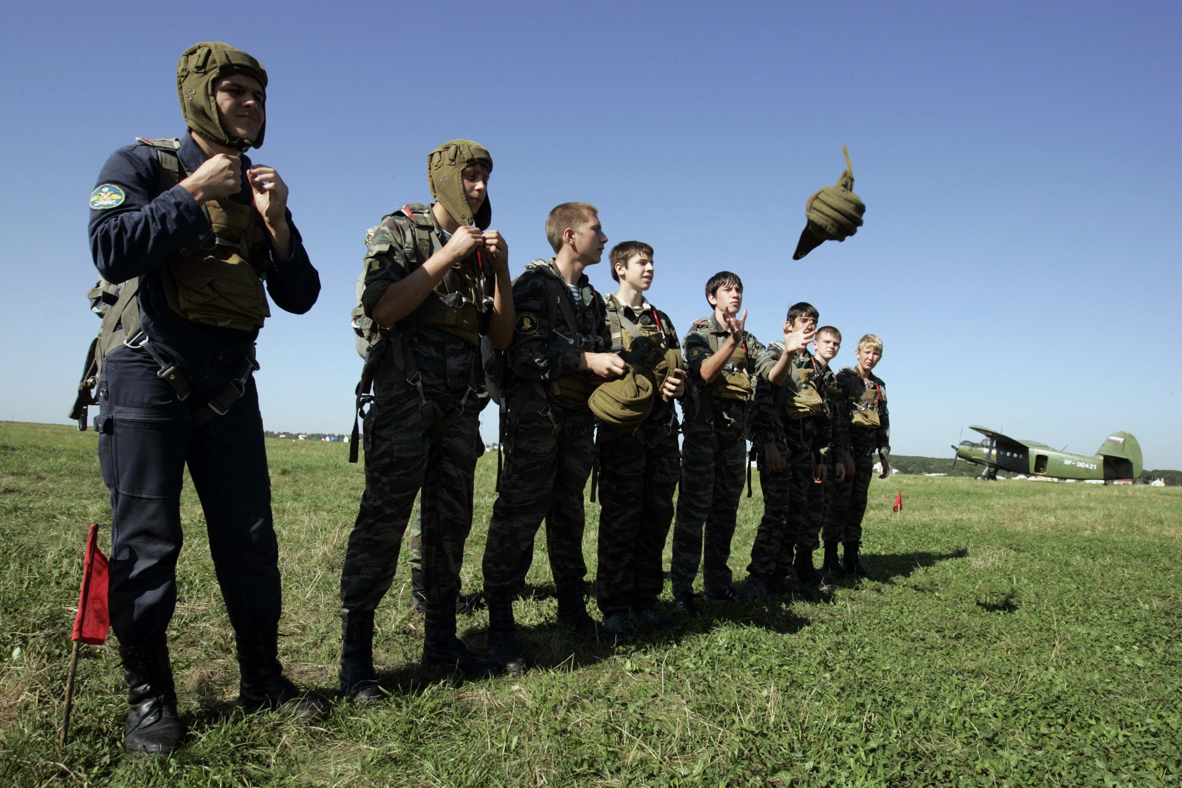 Фото: Школьники готовятся к прыжку с парашютами в рамках углублённых занятий по военной подготовке, Ставрополь. REUTERS/Eduard Korniyenko