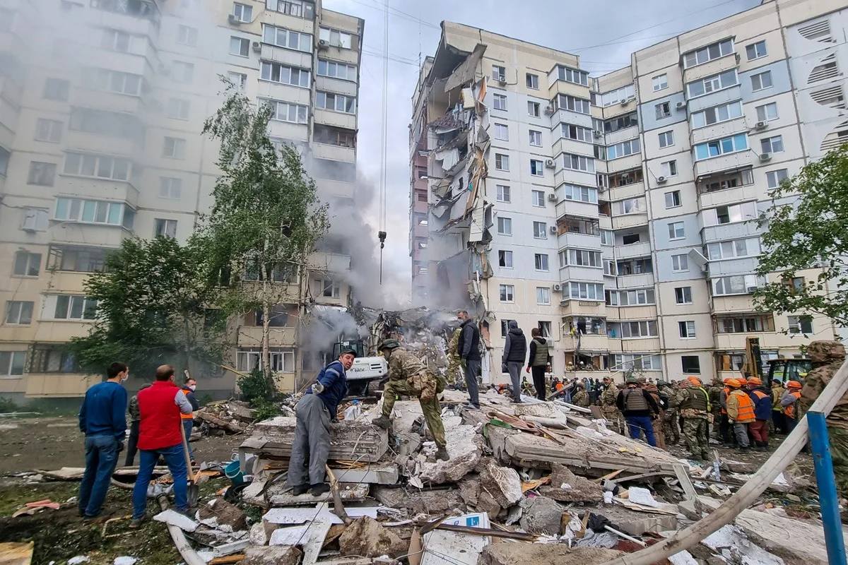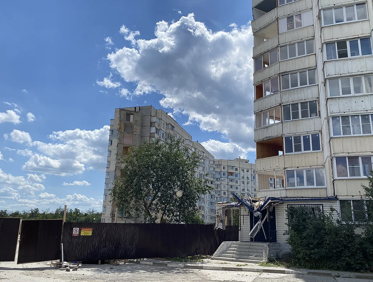 Часть сбитой украинской ракеты упала на один из подъездов. Подъезд обрушился. Сложился за пару секунд.