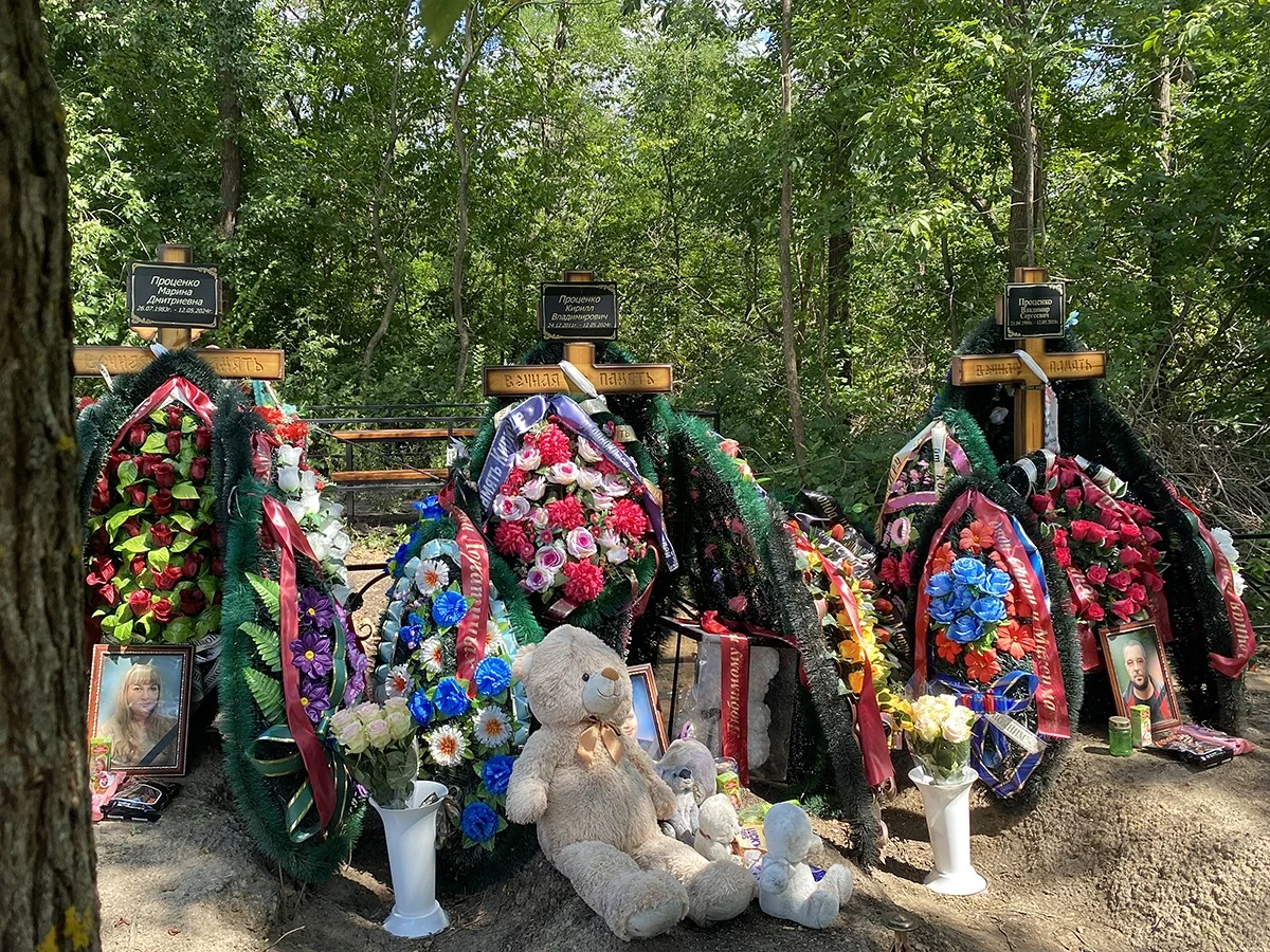 12 мая сбитая ракета упала на один из подъездов многоквартирного дома 55А на улице Щорса. Погибли 17 человек. Володю и Марину хоронили в закрытых гробах. Кирюша задохнулся от угарного газа. Родные говорят, он мог быть жив какое-то время, пока лежал под завалами, но не позвал бы на помощь — просто не понимал, что такое смерть.
