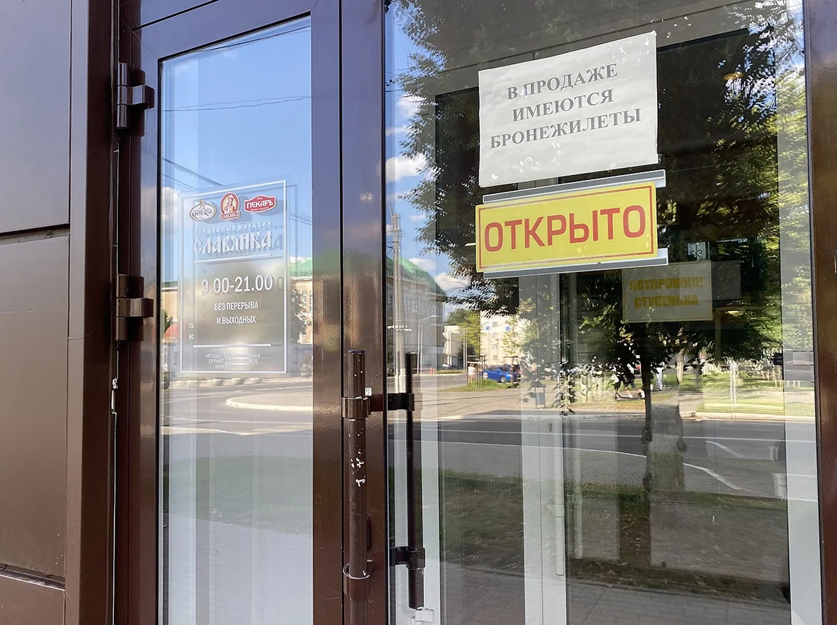 Белгород научился жить под обстрелами. На входной двери кондитерской «Славянка» — листок, на котором прописаны часы работы. А рядом с ним объявление: «В продаже имеются бронежилеты».