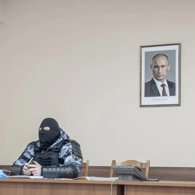 Судьба дважды сводила вместе Дмитрия Маркова и Алексея Навального. Первый раз — 2 февраля 2021 года. Тогда фотографа задержали возле Московского городского суда, куда он как гражданин приехал поддержать Навального, которому на том заседании заменили условный срок на реальный по делу «Ив-Роше». Собравшихся возле здания суда сторонников оппозиционного политика развезли по разным отделам полиции, Марков оказался в ОВД Косино-Ухтомский. И пока задержанных оформляли, фотограф сделал снимок омоновца в амуниции и балаклаве, сидящего под портретом Владимира Путина, и выложил его в интернет. Фото тут же стало вирусным в соцсетях и СМИ, его воспринимали как символ борьбы с путинской властью. Через несколько дней Дмитрий Марков в одном из своих аккаунтов предложил продать единственный подписанный им бумажный экземпляр этого фото и объявил аукцион. Отпечаток фотографии ушел за 2 млн рублей, которые автор перечислил правозащитным организациям ОВД-Инфо* и «Апология протеста»*.