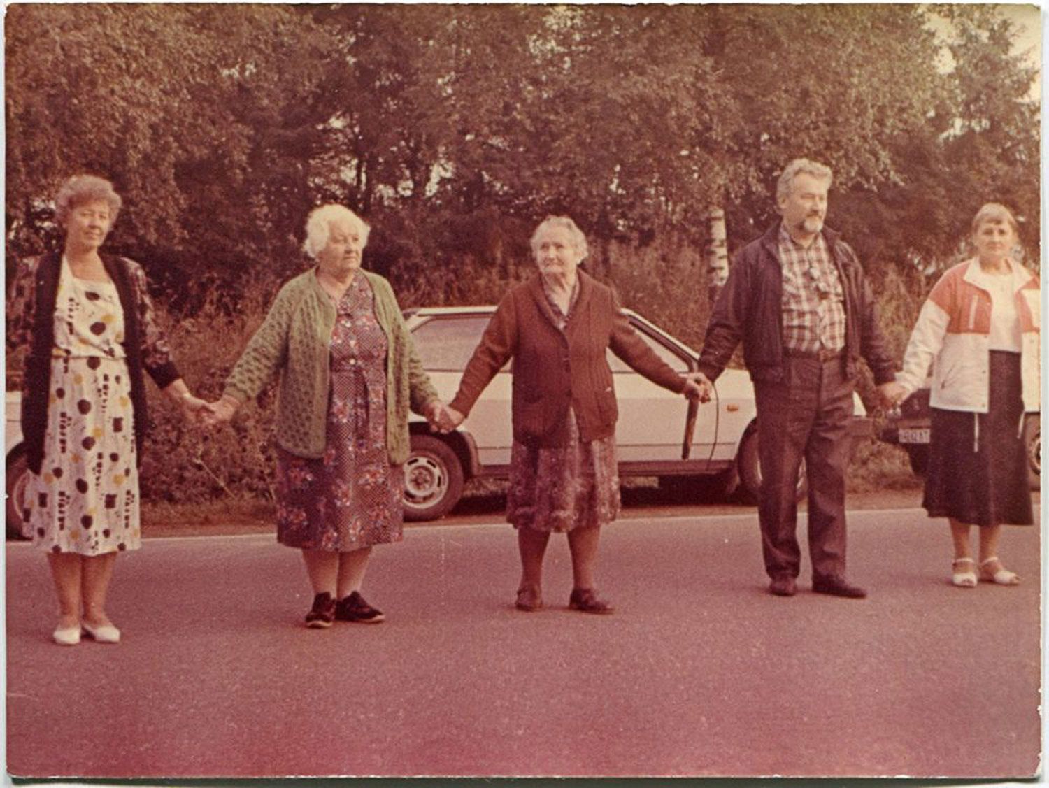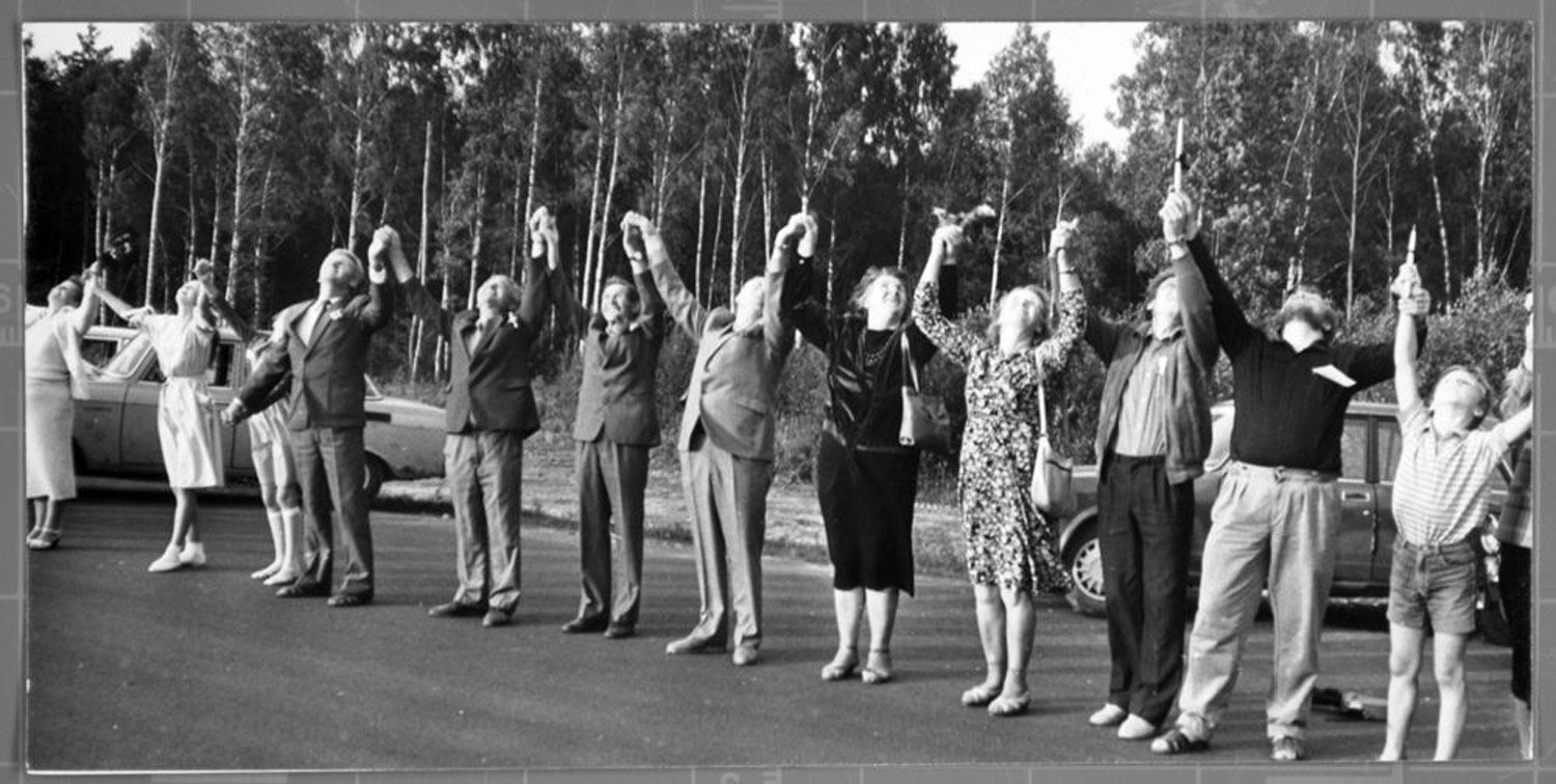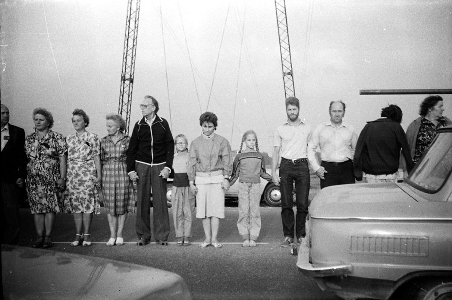Участники акции в Эстонии (где именно сделана фотография — не уточняется). 23 августа 1989 года