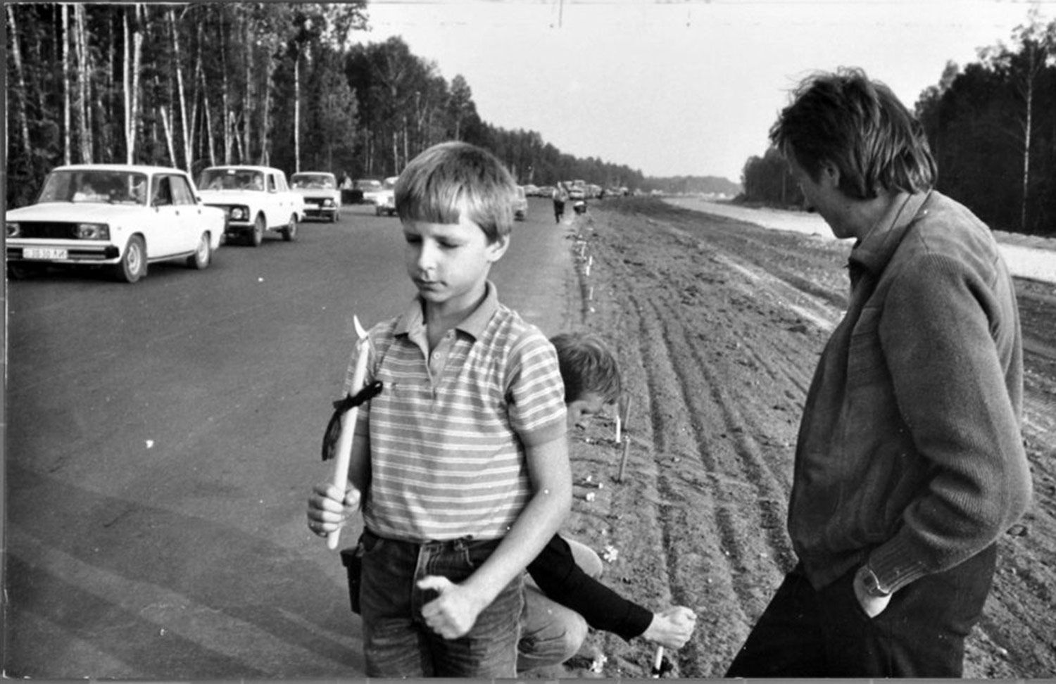 Витас Микалонис, Данелиус Вилькелис, Витас Волунгевичус, Юрате Волунгевичене на 226-м километре трассы Вильнюс-Укмерге. Литва, 23 августа 1989 года