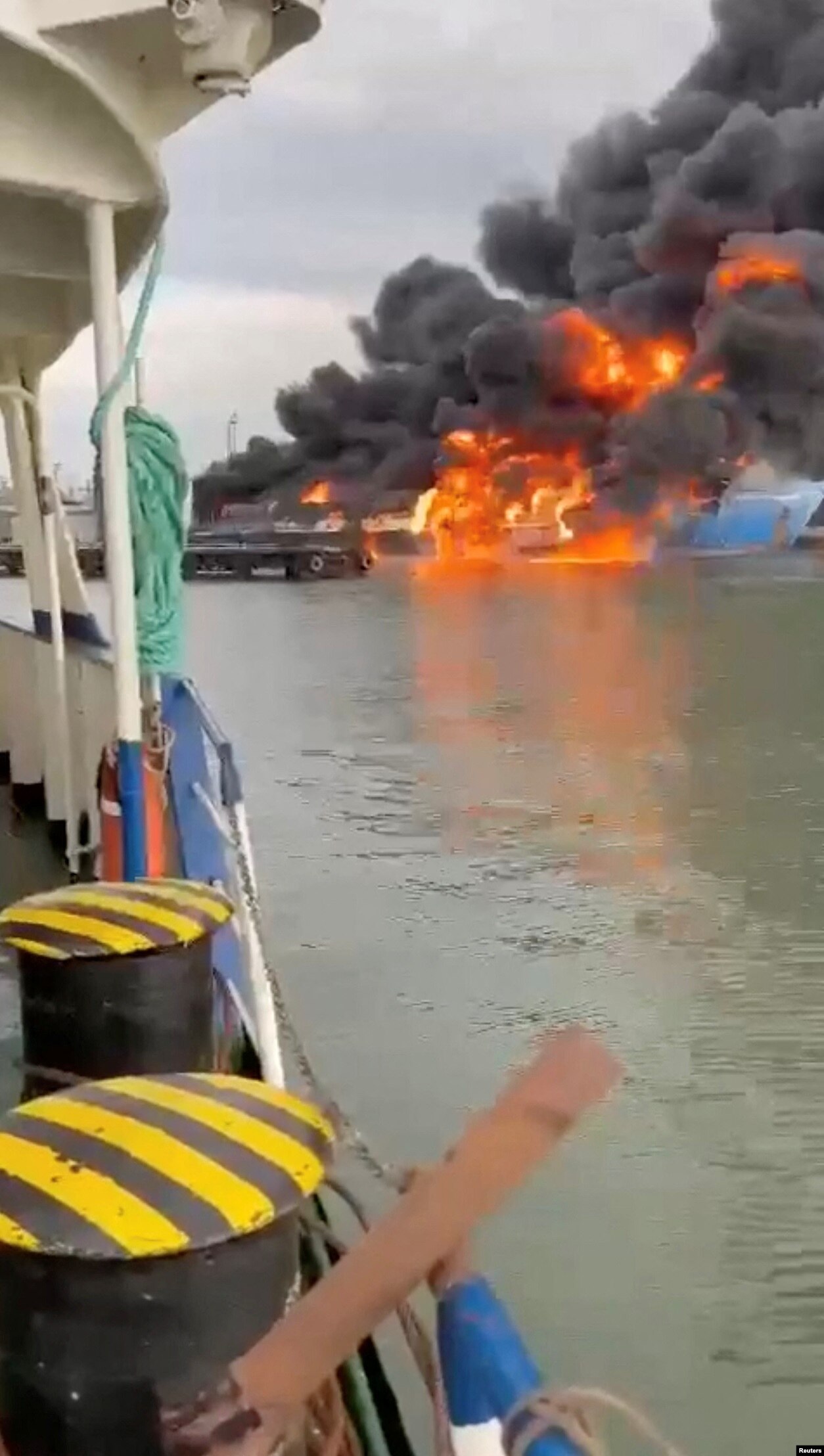 В телеграм-канале оперативного штаба Краснодарского края появилось сообщение, что в порту "Кавказ" был атакован железнодорожный паром с топливными цистернами, возник пожар, о пострадавших не сообщалось.