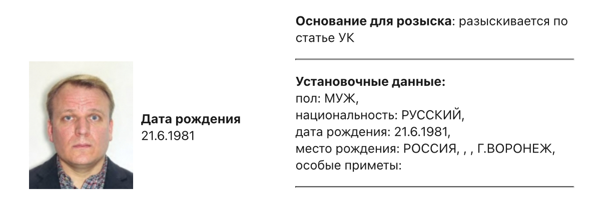 Скриншот из базы розыска МВД