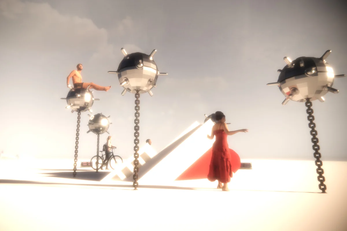 В этом году в Блэк-Рок-Сити заявлено два арт-объекта, напротив которых стоит пометка «Россия». Первый называется Mir or?* («Мир или ?*) и представляет собой подводные мины, закрепленные на якорном тросе. Только трос устремляется в небо, где и «парят» эти мины. «Эта работа напоминает нам, что даже самые темные орудия разрушения могут быть преобразованы в объекты созерцания и искусства. Она призывает нас задуматься о последствиях наших действий и выбора, подчеркивая важность стремления к миру и сохранения нашего культурного и природного наследия для будущих поколений», — отмечают авторы инсталляции Станислав и Ирина Шминке. В описании проекта указано: «Екатеринбург, Россия». Правда, семейная пара покинула РФ еще весной 2022 года, а в ноябре 2023-го в отношении Станислава возбудили дело по ч. 1 ст. 280.3 УК («Публичные действия, направленные на дискредитацию Вооруженных cил России»).
