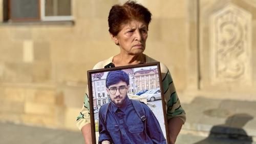 Бабушка арестованного исследователя и активиста Бахруза Самадова вышла на протест у офиса омбудсмена Азербайджана.
