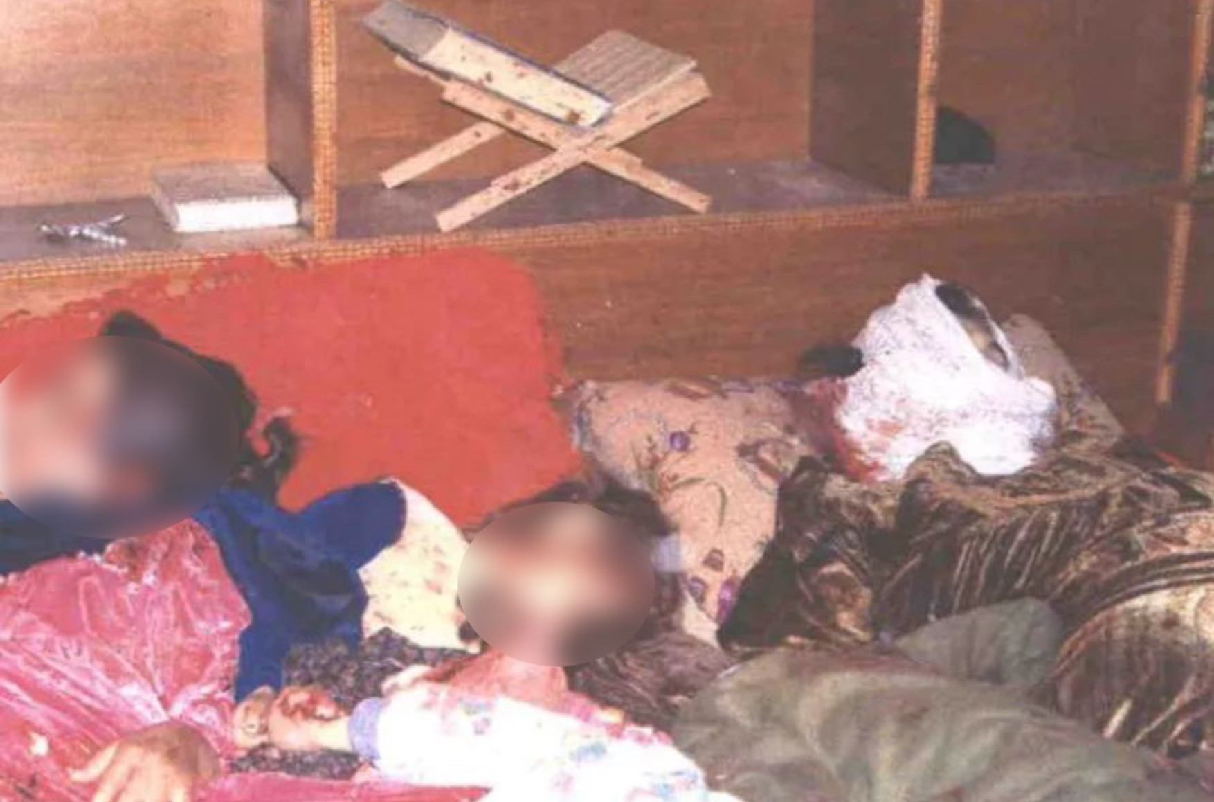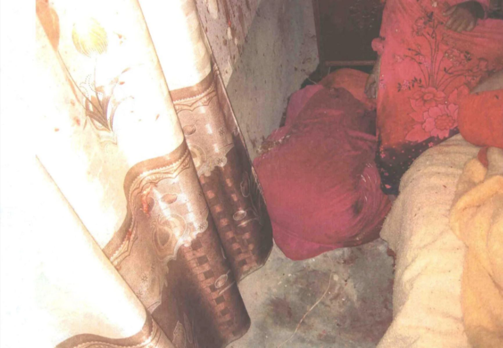 На одной из фотографий — 40-летняя Айда Яссин Ахмед лежит на кровати в окружении своих мертвых детей в спальне семьи. Слева направо: Сабаа, десять лет, Айеша, три года, Зайнаб (на переднем плане), пять лет, Мохаммед, восемь лет, и Айда. Единственной выжившей была 11-летняя девочка Сафа, которая спряталась в углу рядом с кроватью во время стрельбы.